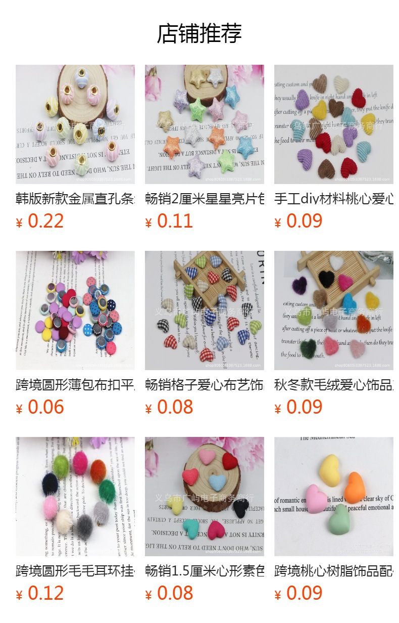 亮片星星包布饰品配件,宽2.2厘米,宽2厘米,厚0.5厘米,混色装。还有其他款式 如 心形,圆形,五角星等,常用于发饰工艺品 服装和鞋花等,款式多,量大可以定做加工。