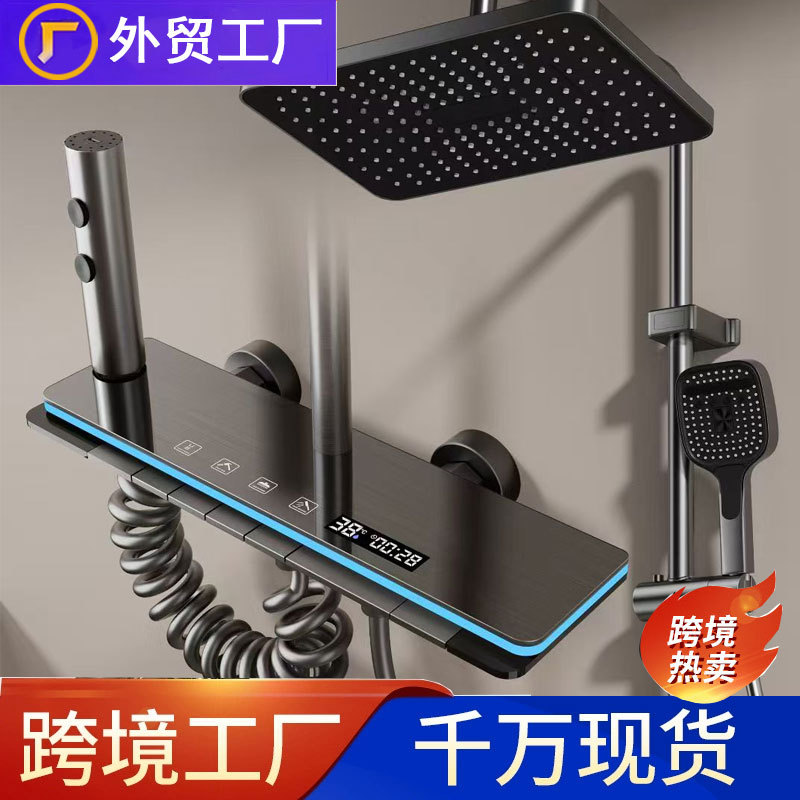 黒色のフルセット恒温デジタルディスプレイシャワーセット、全銅製浴室用シャワー水栓一式、越境卸売