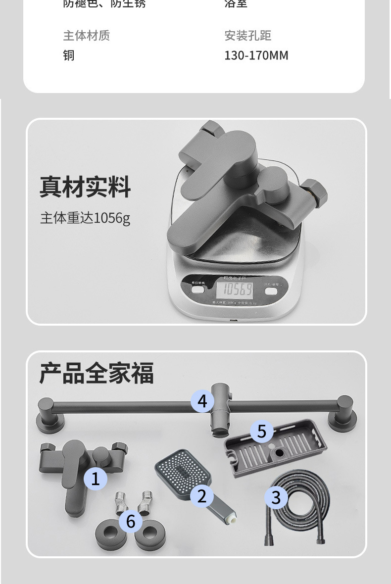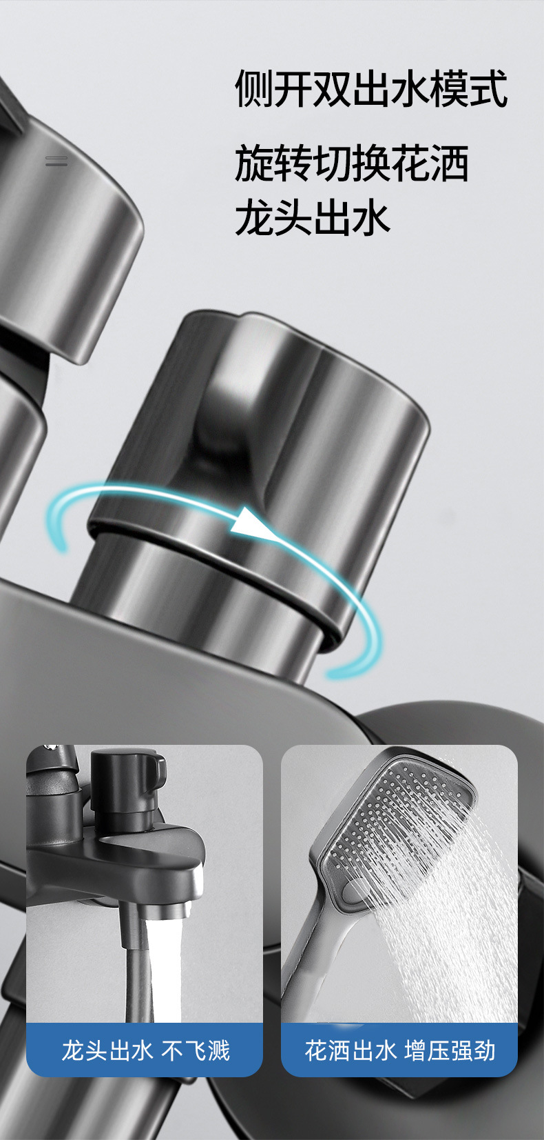 枪灰淋浴系统花洒套装一整套浴室卫浴恒温沐浴器洗澡花酒全套外贸