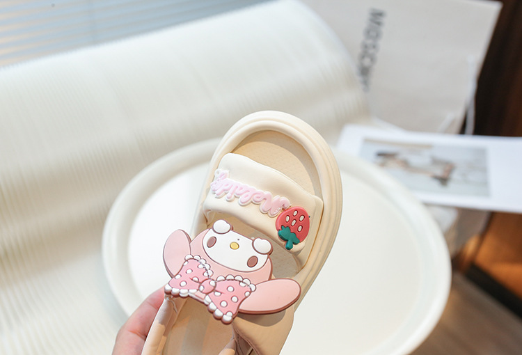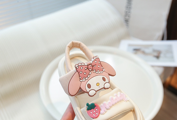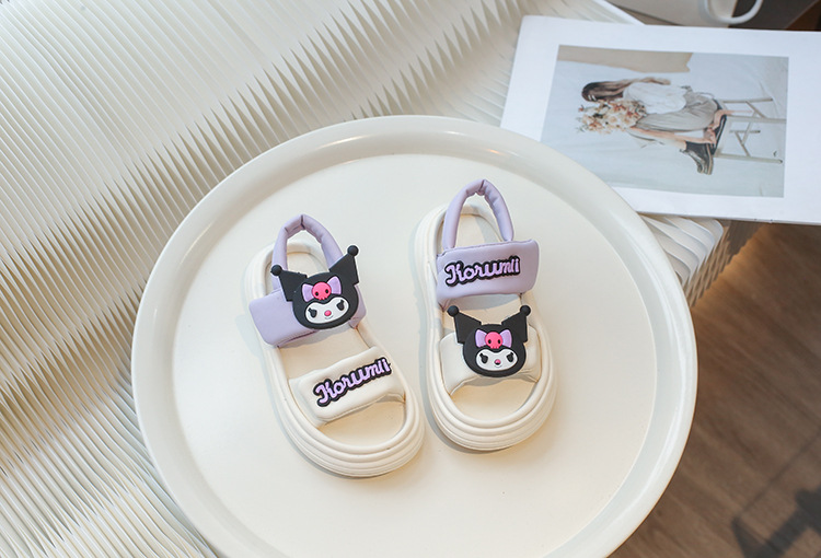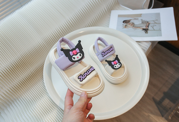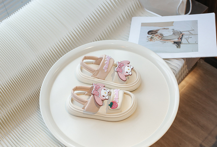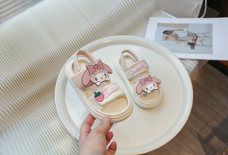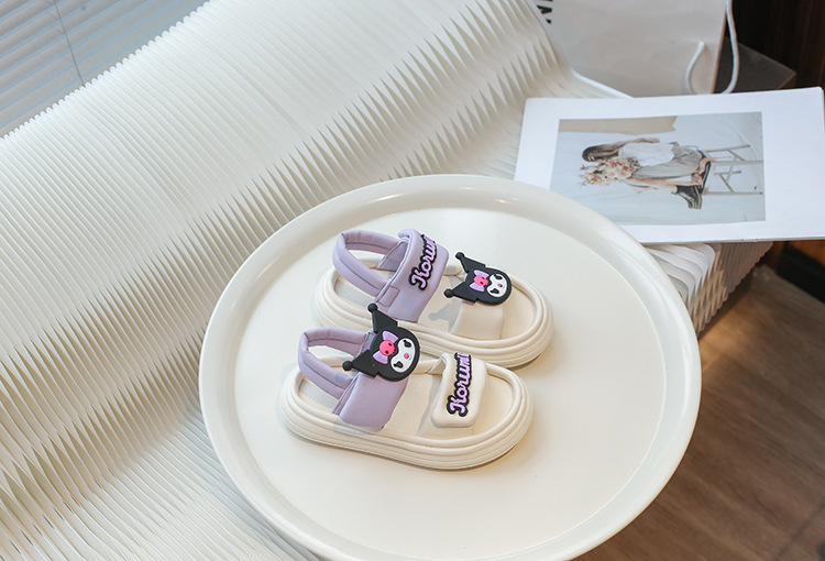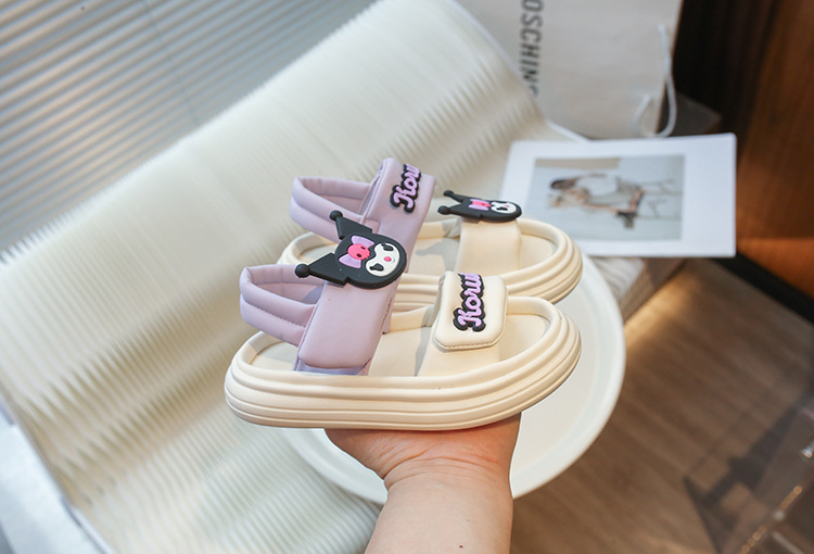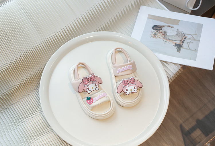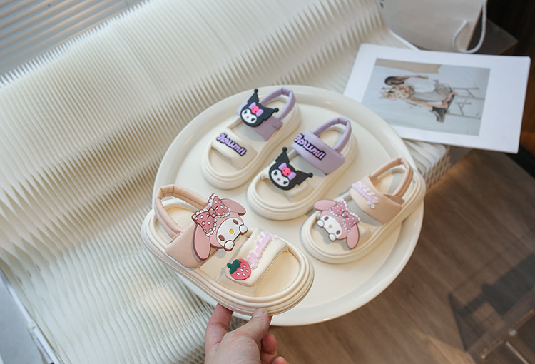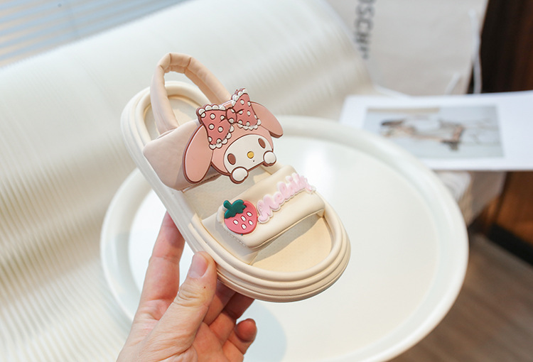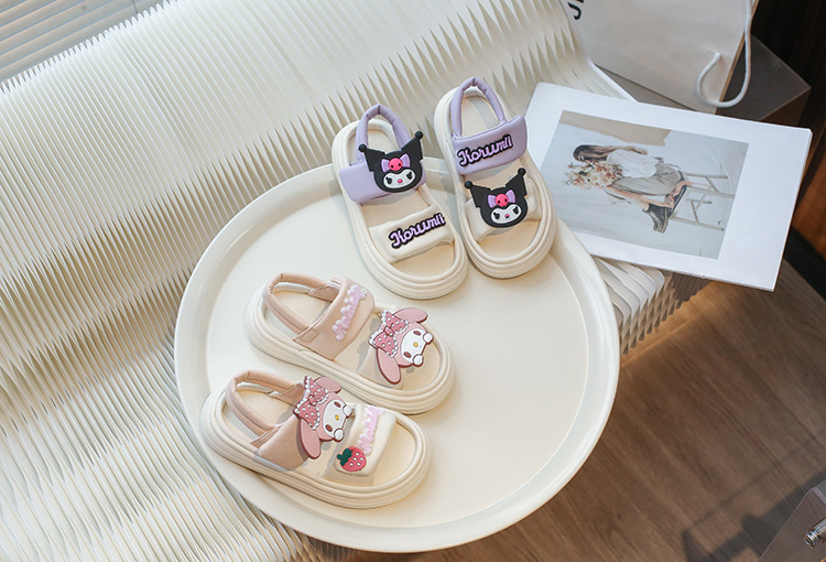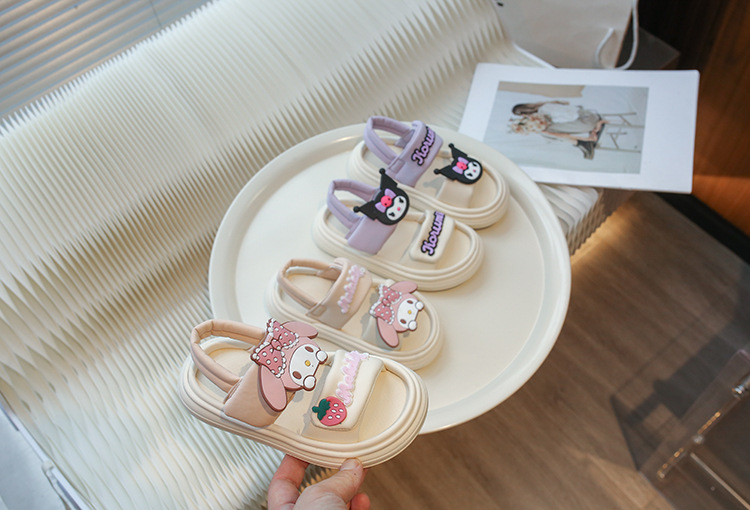 漫画の女の子のビーチシューズ2024夏の新しいファッションの柔らかい底の王女の靴の通気性の滑り止めの子供のサンダル