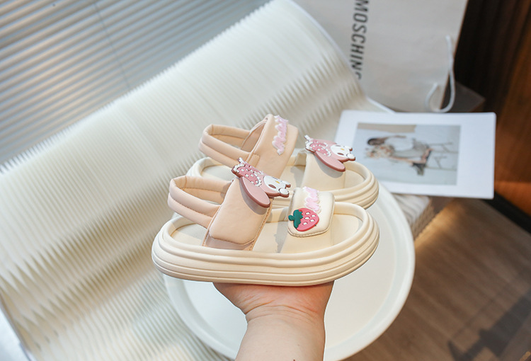 子供のオープントゥビーチシューズ 2025 春夏新作ガールズサンダルかわいいクマベルクロ子供靴