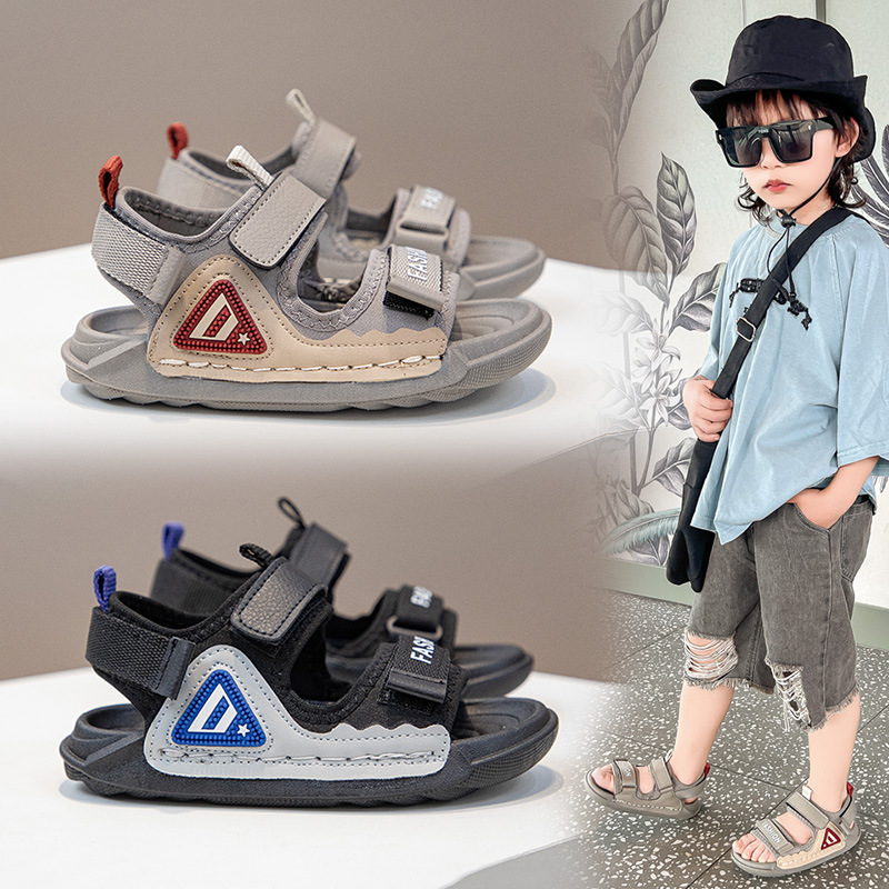卸売 2025 夏の新しい中型および大型子供用男の子サンダル ベルクロソフトソールファッションカジュアル小さな男の子ビーチシューズ