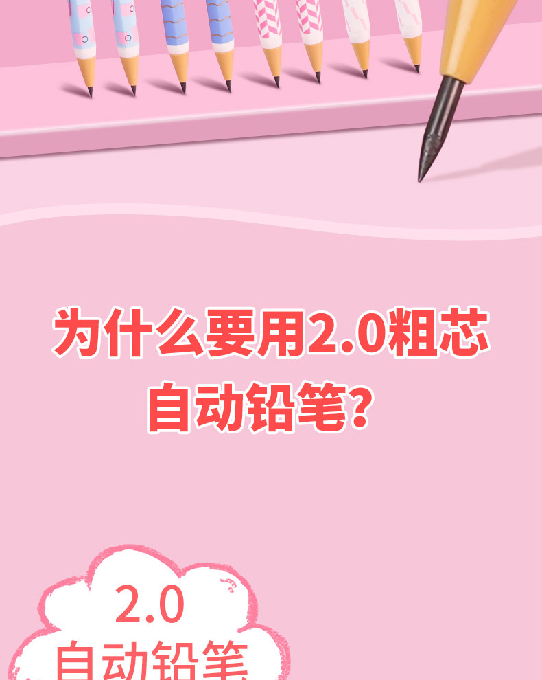 天卓01069太芯2.0シャープペンシル小学生専用の連続芯アニメ自動ペンは太く書かれている