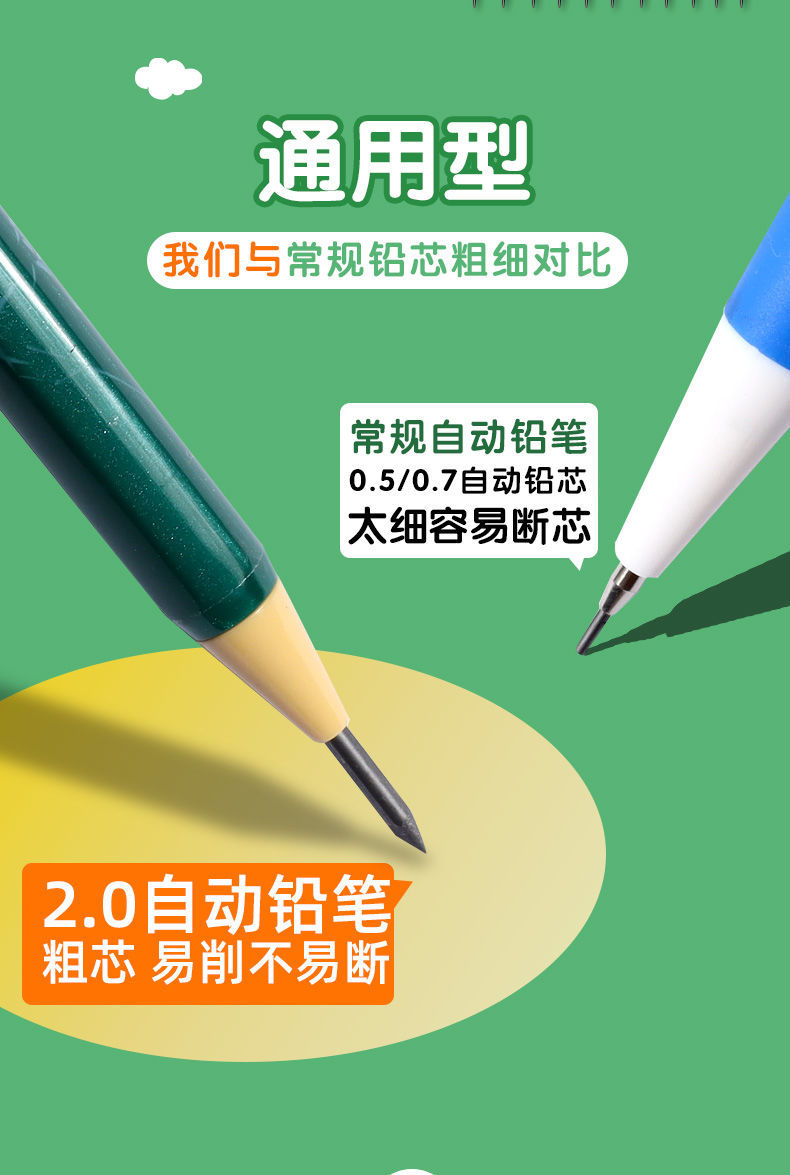 2.0太芯シャープペン芯プッシュ式小学生用木铅笔书き続け2mmペン芯