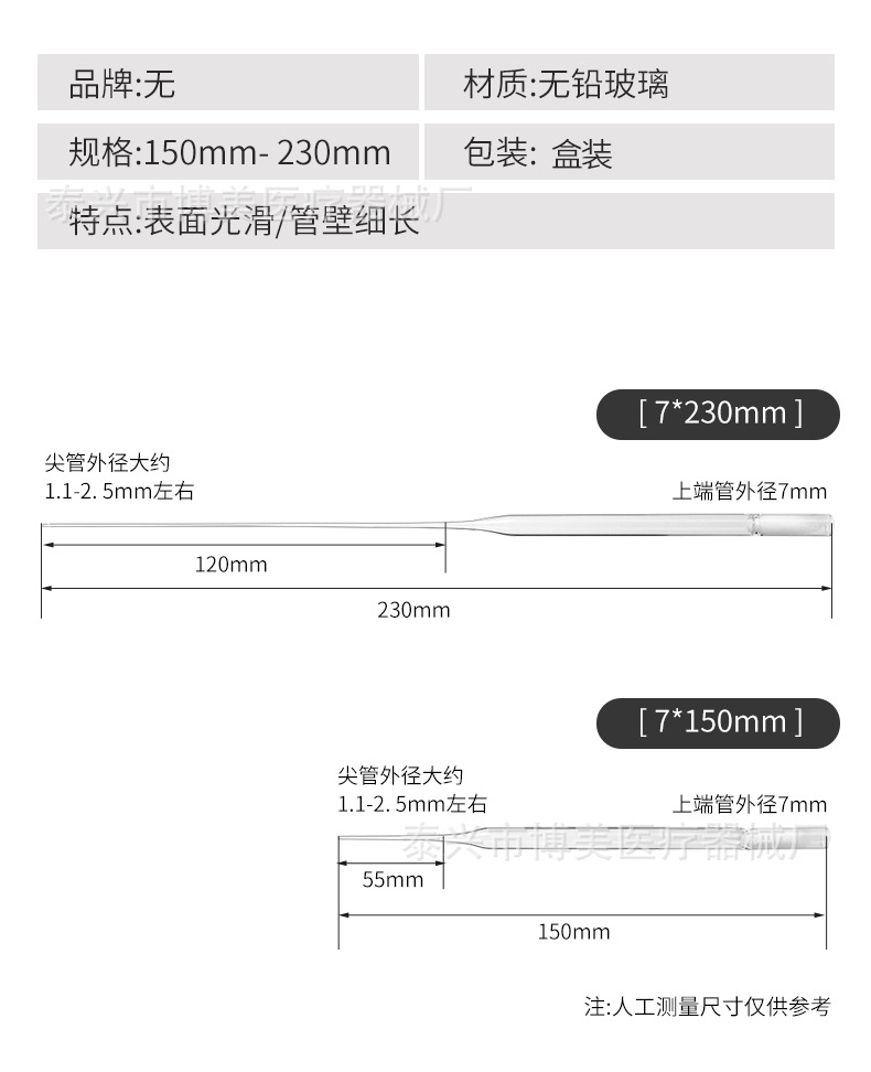 メーカー卸売ガラスパスツールストローガラススポイトガラスストロー7*150 230mm