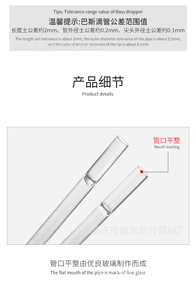 博美メーカー直供ガラススケール滴管直膠頭1ml精油瓶ストロー直曲丸頭先滴管