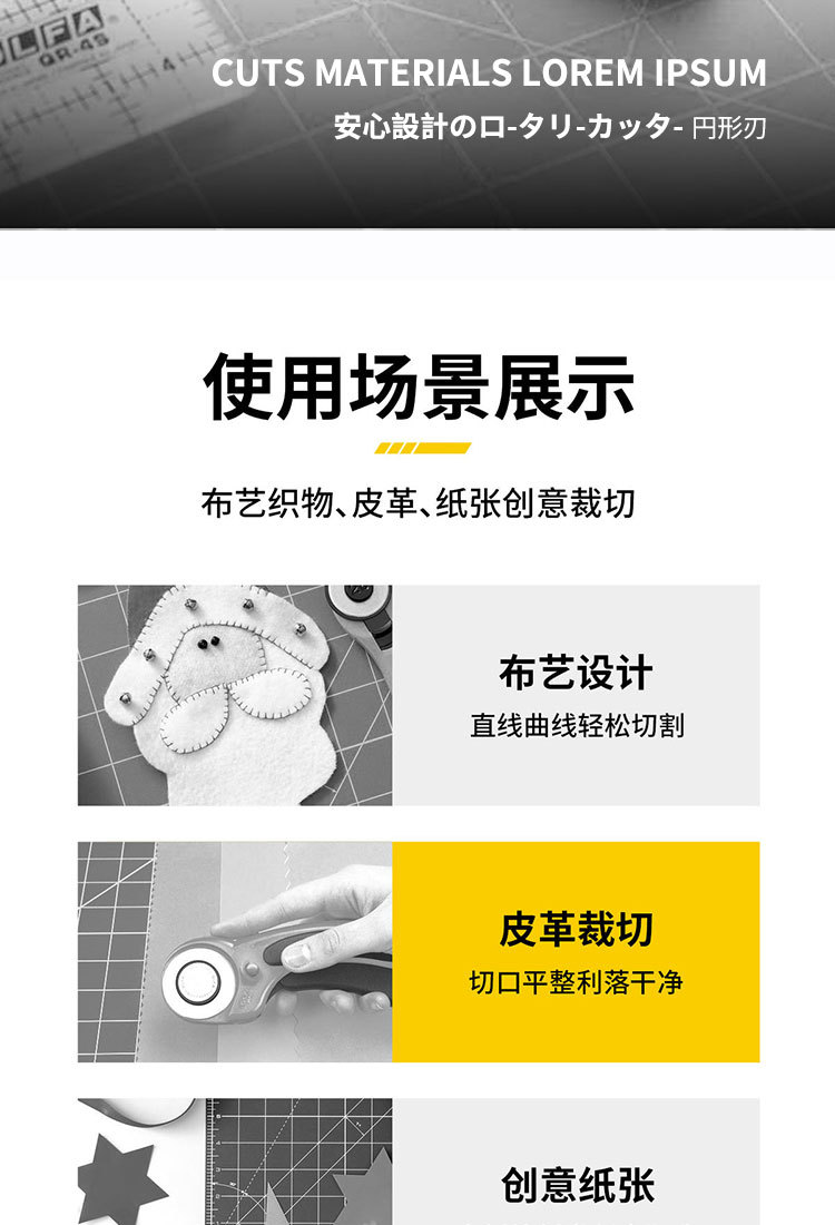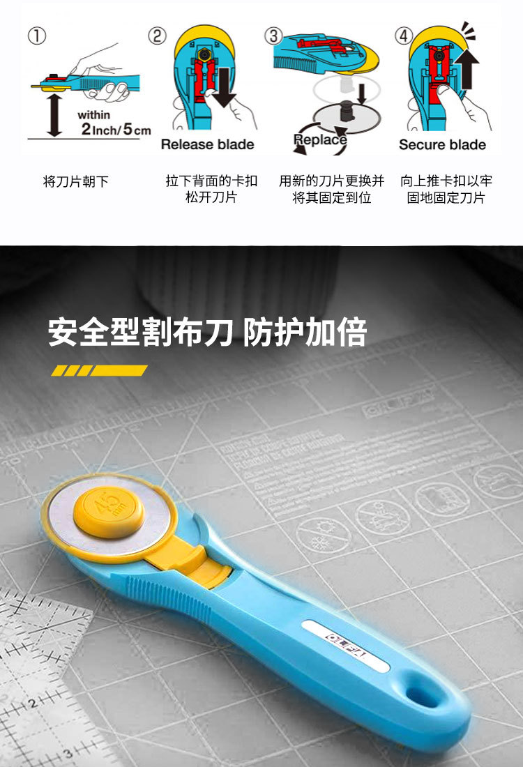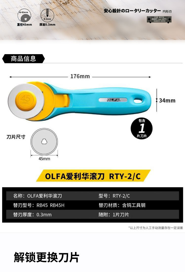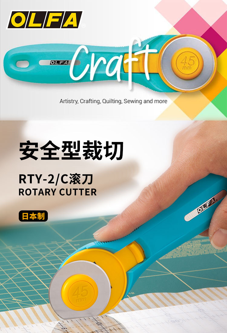 OLFA愛利華安全ホブRTY-2回転式裁断布輪刀45mm曲線割布刀