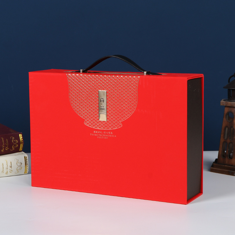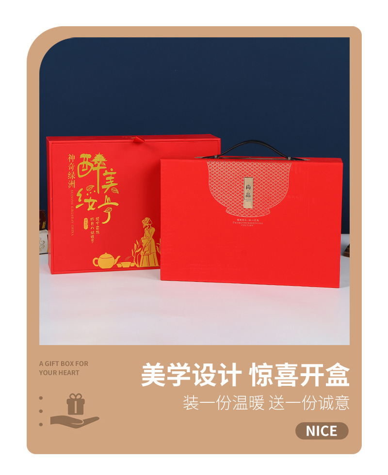 赤い中国式手提げギフトボックス栄養品健康食品収納ギフトボックス高級特産品ギフトボックス卸売り