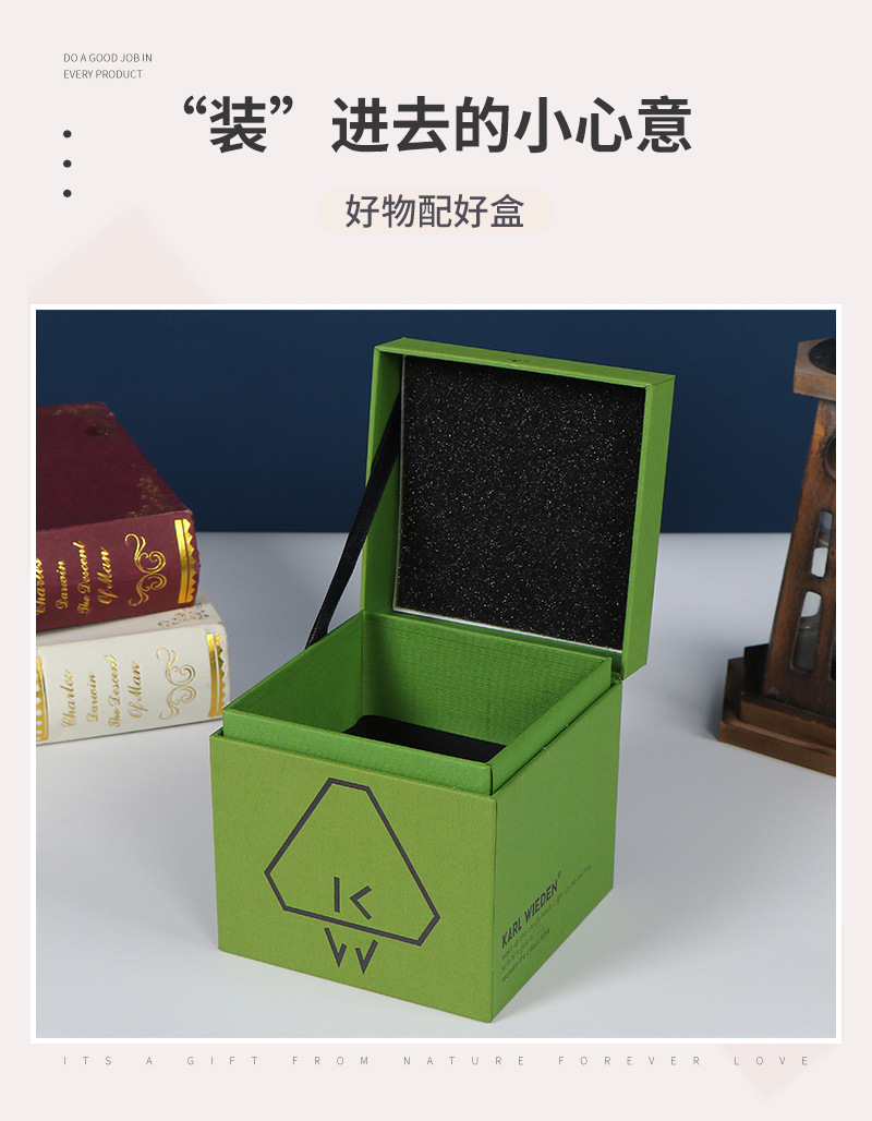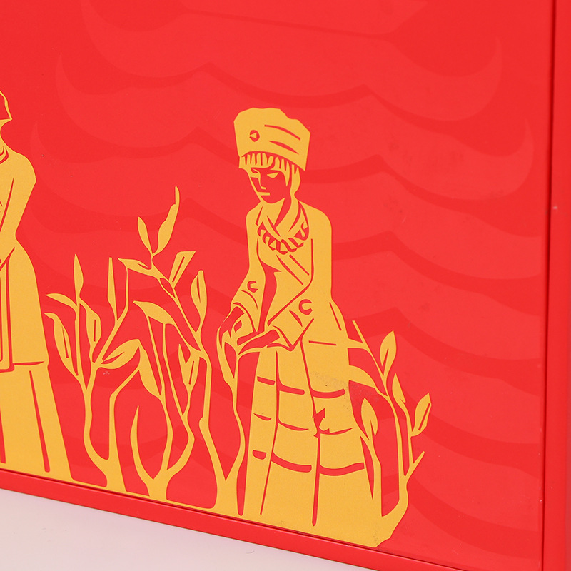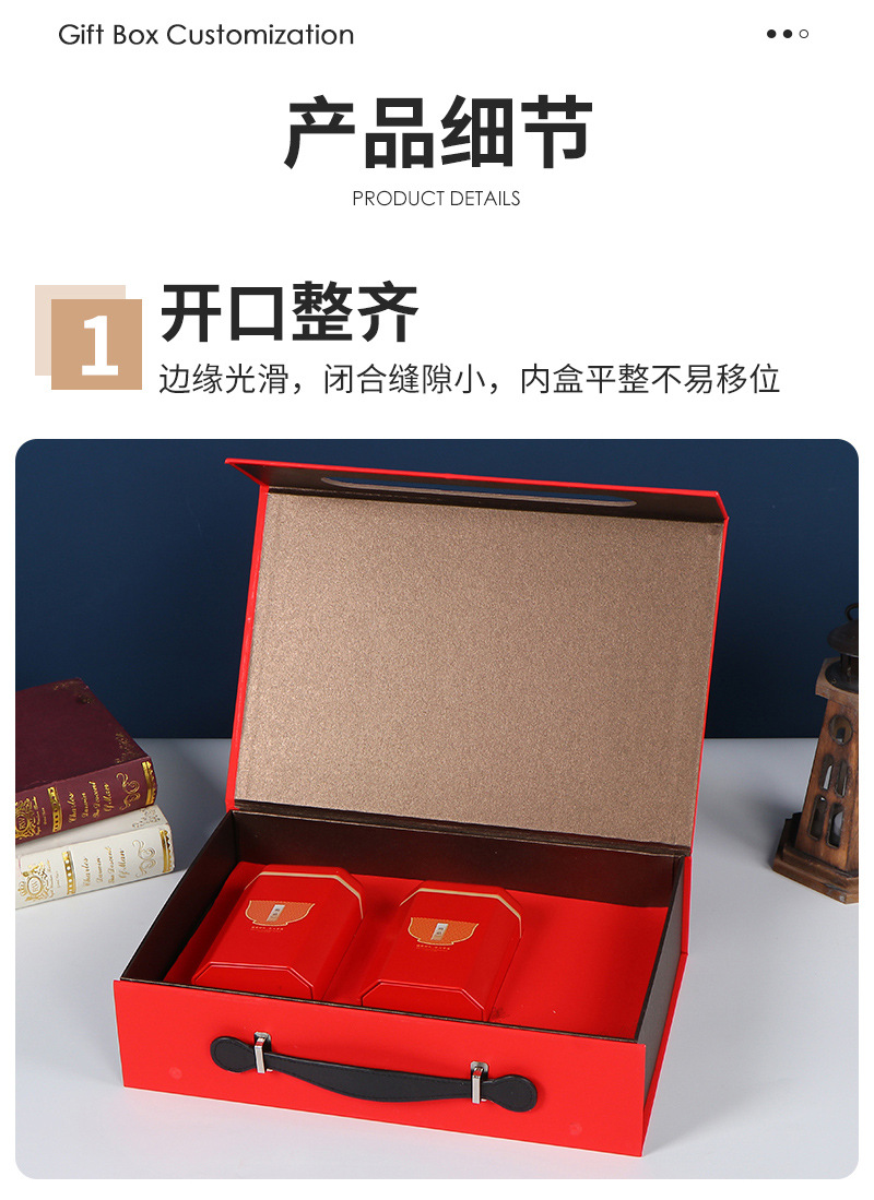 茶のギフトボックスのオーダーメイドのロゴの天地のふたを開けてプレゼントの箱を開けます。