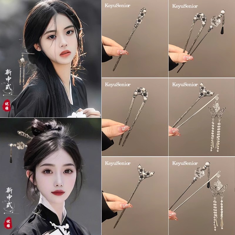古風漢服流蘇ヘアピン新中国式高級感ヘアピン国風日常チャイナドレス