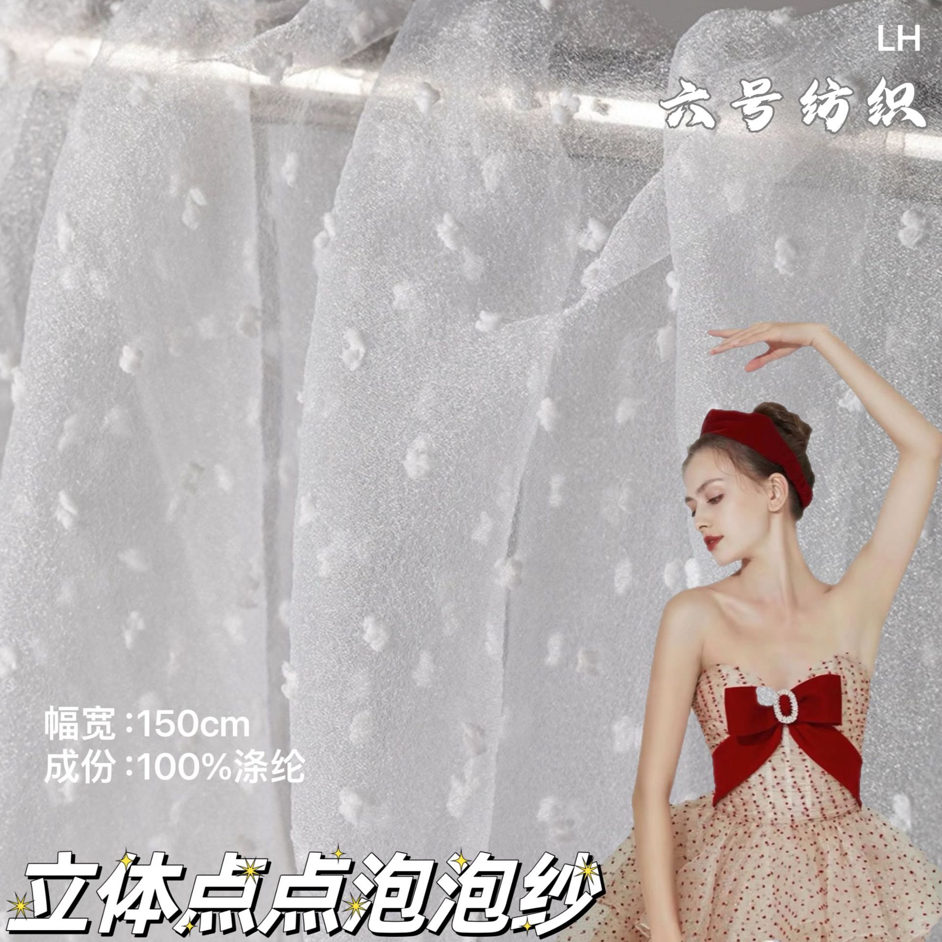 立体バブルドットシフォンカットワークオーガンジー網目ふわふわウェディングドレス生地ベビー服子供服ロリータ