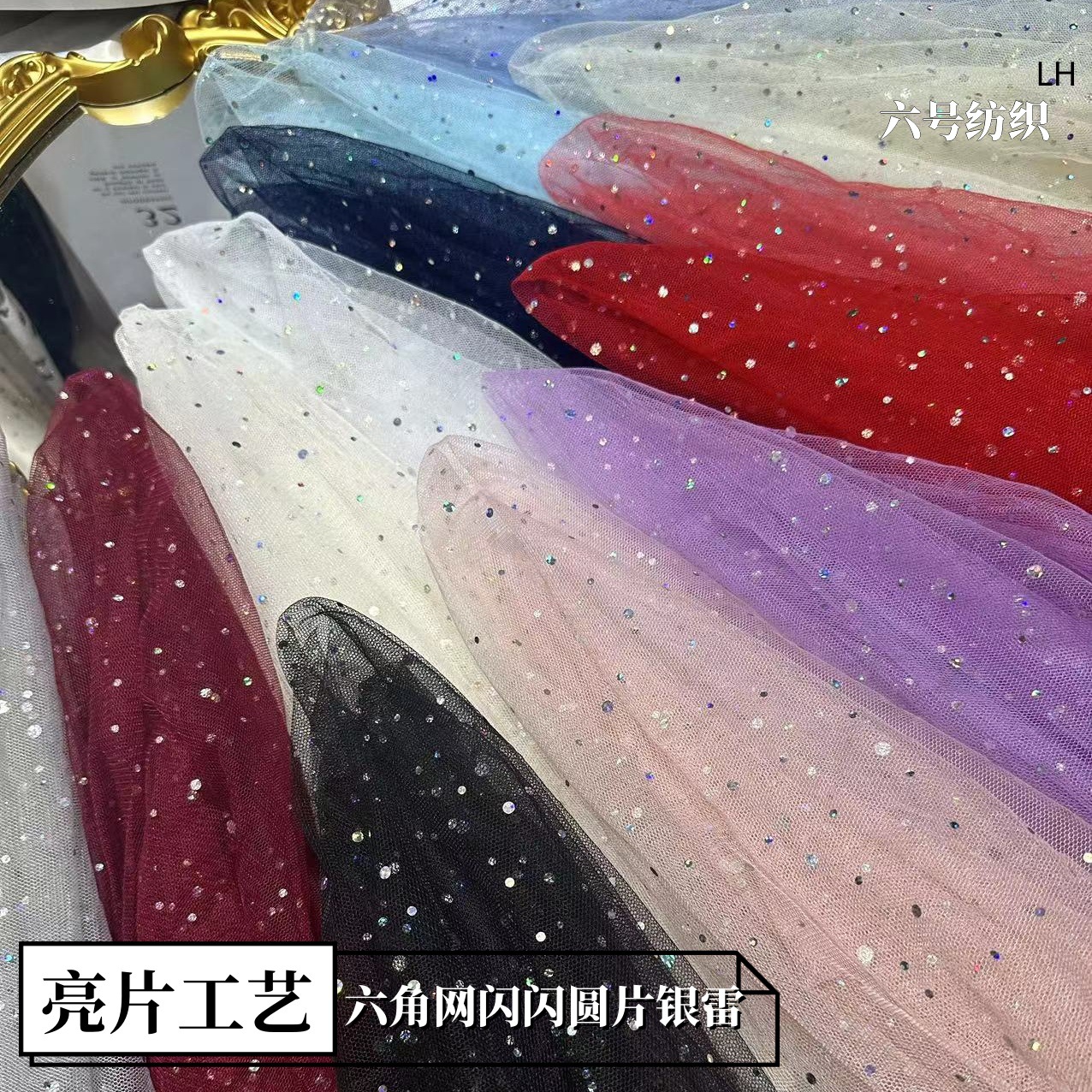 硬質ネットの幻彩生地、ホットフィルム加工、銀箔加工、人魚姫風パフスカート、DIYメッシュドレス、ウェディング背景布、メッシュ素材
