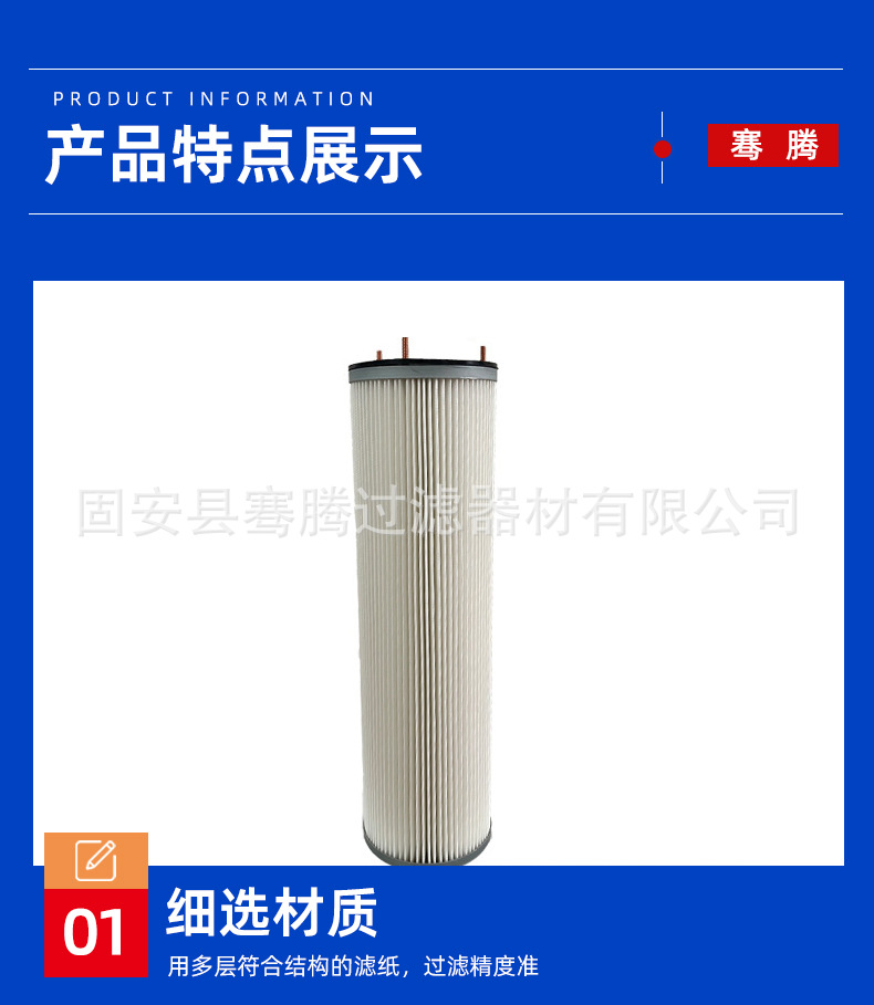 除塵フィルターエレメント、産業機械除塵フィルターエレメント、帯電防止フィルターカートリッジ、スプレー塗装除塵粉末回収フィルターカートリッジ