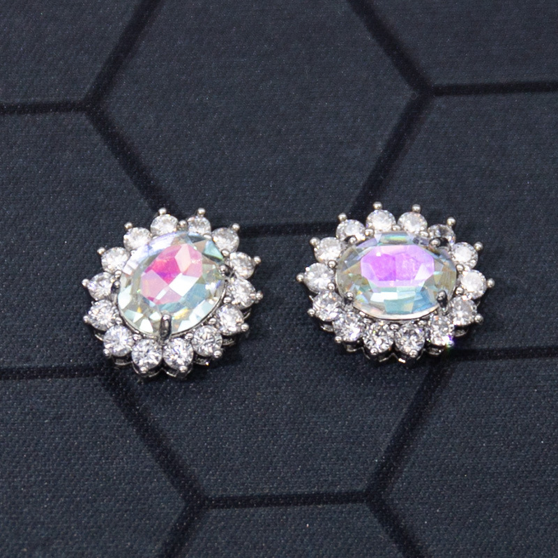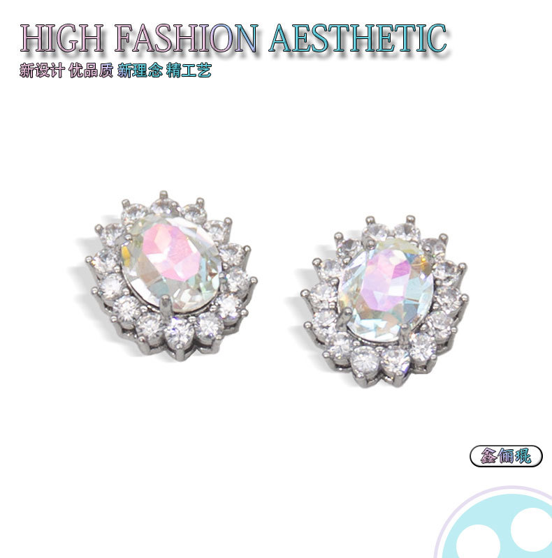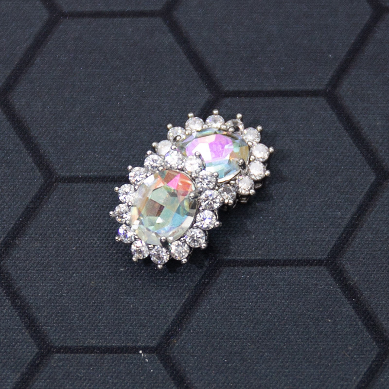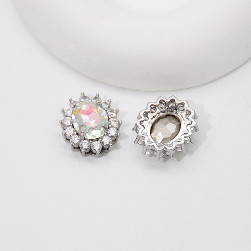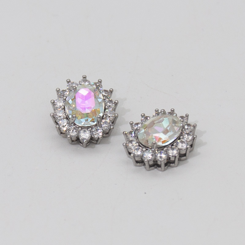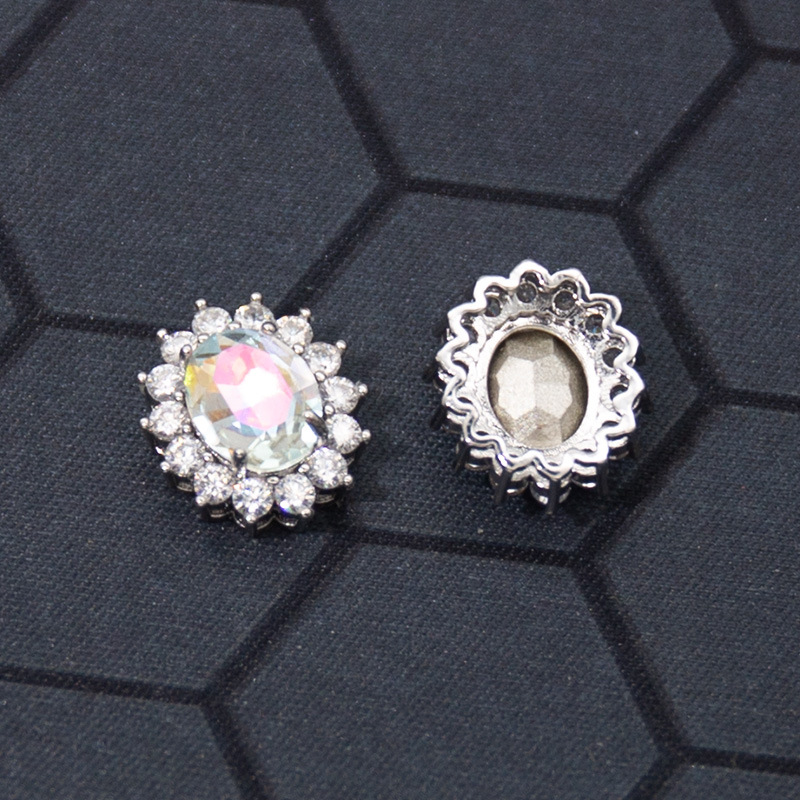 ファッションABカラー楕円形ジルコンは高級合金の手縫いボタンを掛けます。