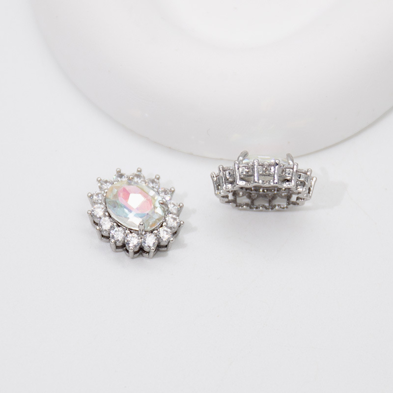 新しい楕円形の銅象嵌ジルコンシャツカフスファッションクリエイティブドレスウェディングドレス装飾 DIY ボタン卸売