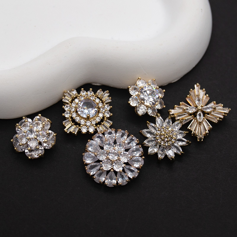 卸売銅メッキスノーフレークジルコンボタン、ファッショナブルな婦人服ジャケット、シャツ、セーター用ボタン