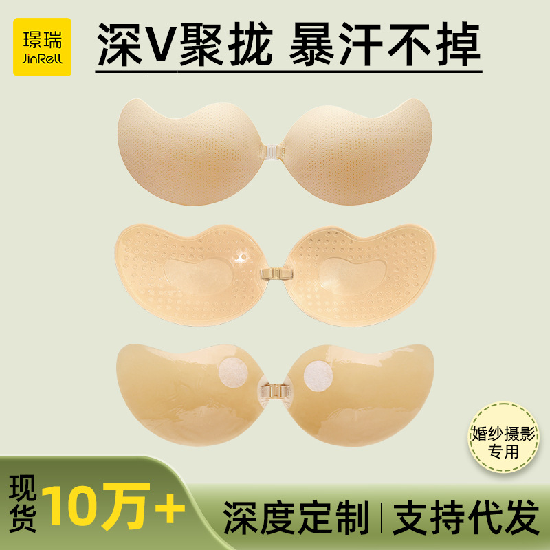 スポット卸売ソリッドシリコン胸パッチ、目に見えない、痕跡のない、超薄型胸パッチ、プッシュアップ胸縮小ブラ、ウェディングドレスサスペンダー