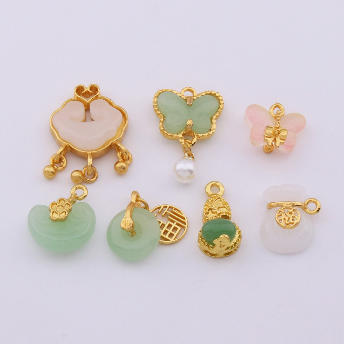 グリーン蝶模造玉ペンダントDIYアクセサリーアクセサリー卸売ペンダント合金ブレスレットネックレス瑠璃ペンダント