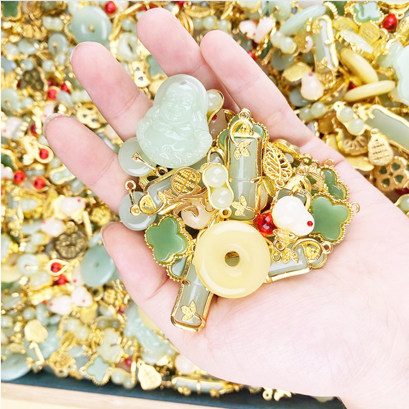 グリーン福袋模造玉ペンダントDIYアクセサリーアクセサリー卸売ペンダント合金ブレスレットネックレス瑠璃ペンダント
