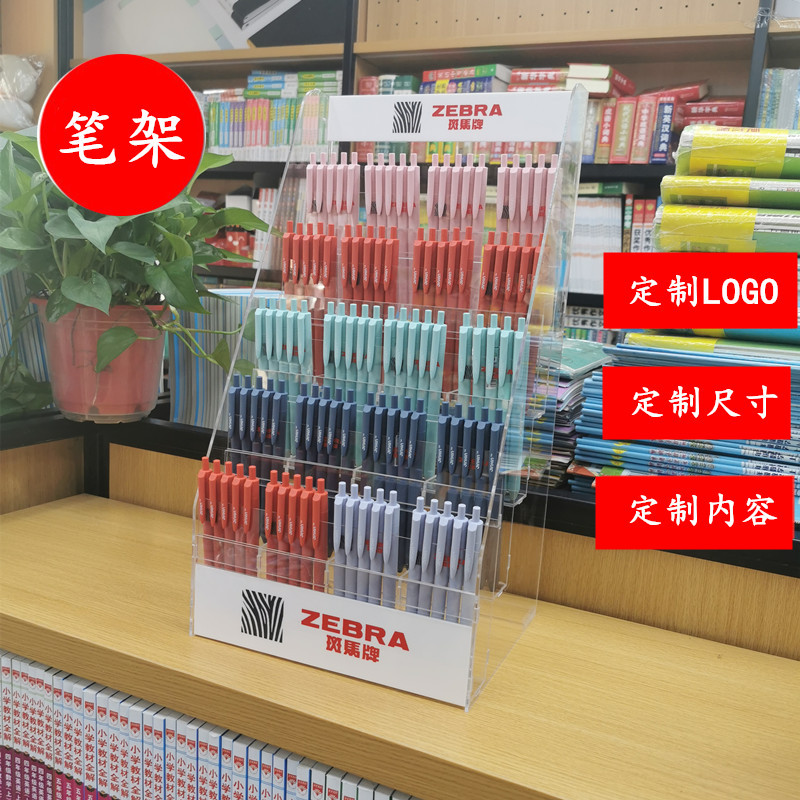 アクリルペンホルダー、バイレペンホルダー、ゼブラペンホルダー、スーパーマーケットコンビニ収納、文具店、書店ディスプレイ