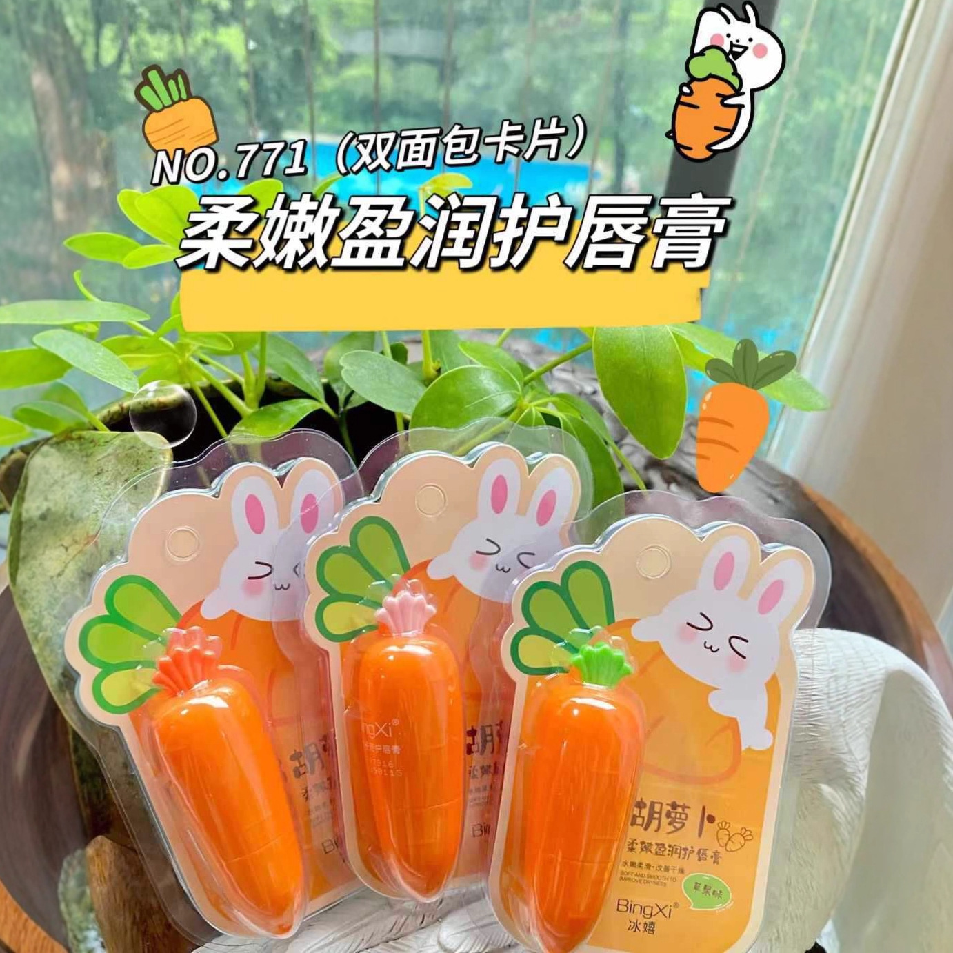 冰嬉771胡萝卜柔嫩盈润护唇膏秋冬水嫩改善干燥卡通唇膏批发代发