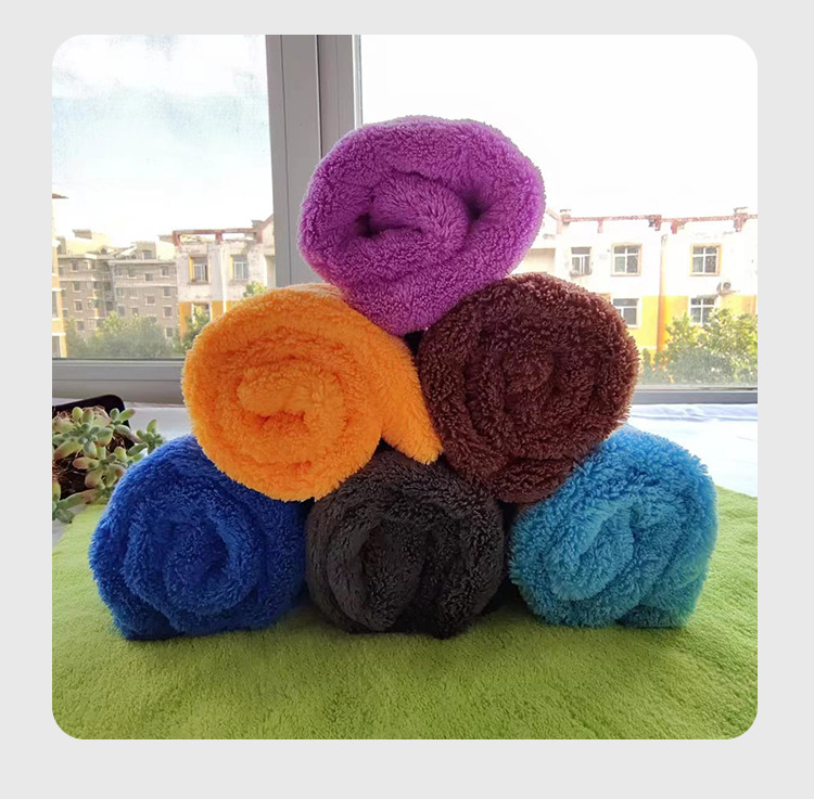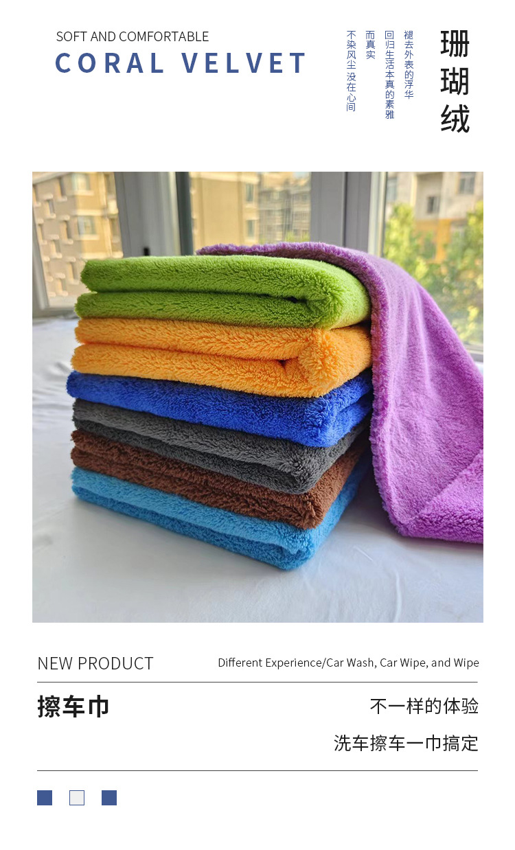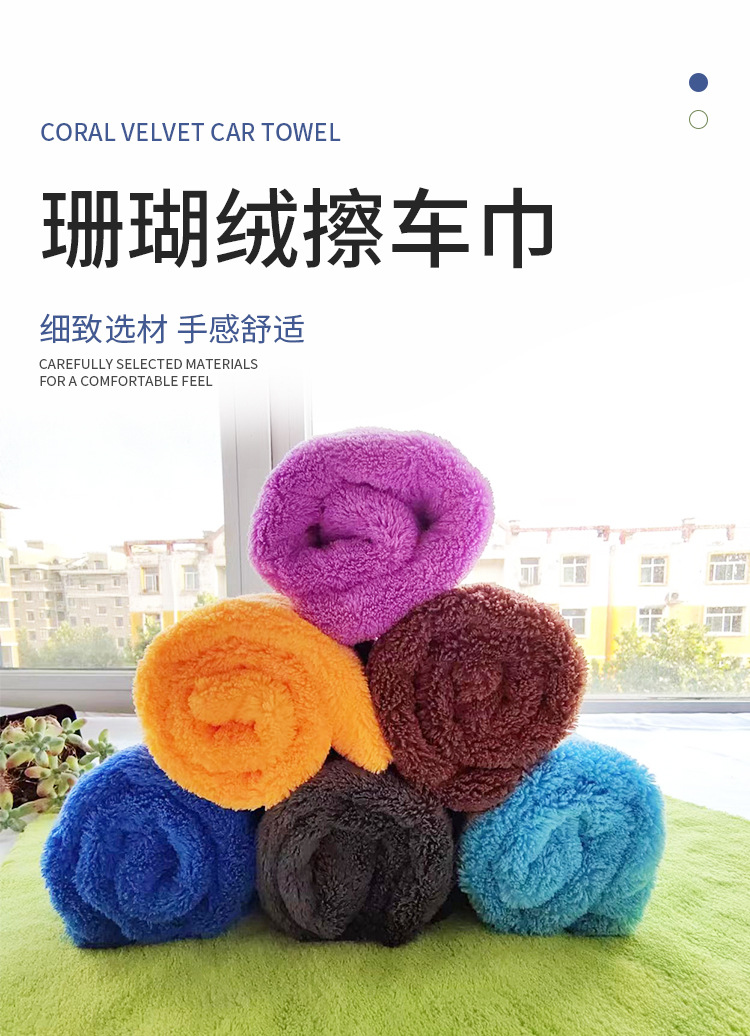厚い色のサンゴの絨毯を増やして車のタオルを拭いて卸売りします。柔らかい吸水の厚いタイプのタオルは毛の雑巾を落としにくいです。