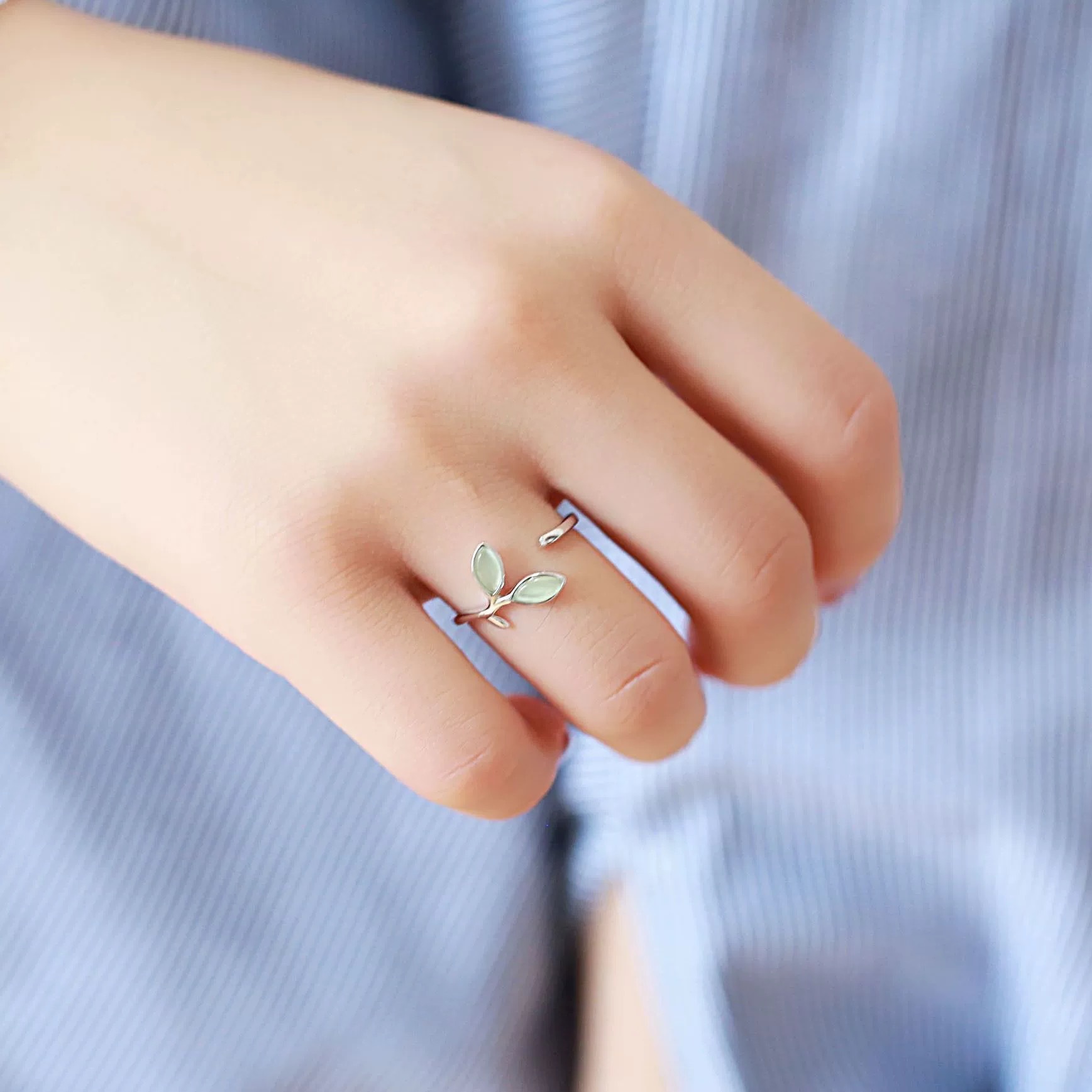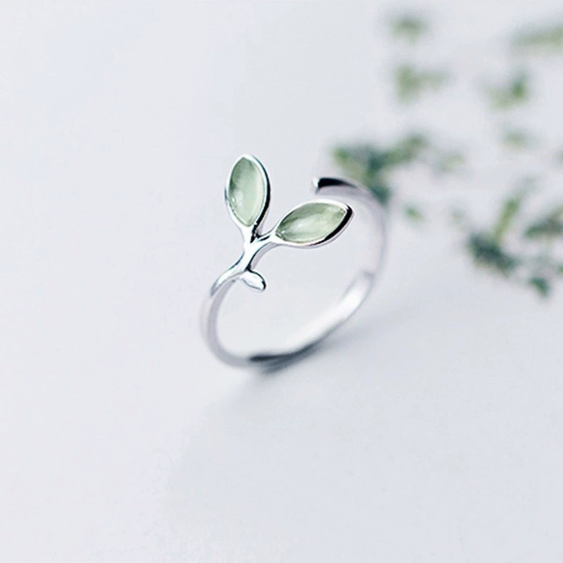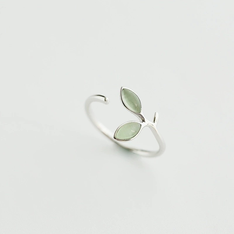 2024新型の小清新な緑芽の葉の指輪の女性の猫の目の石の葉は口を開けてダイエットすることができます。