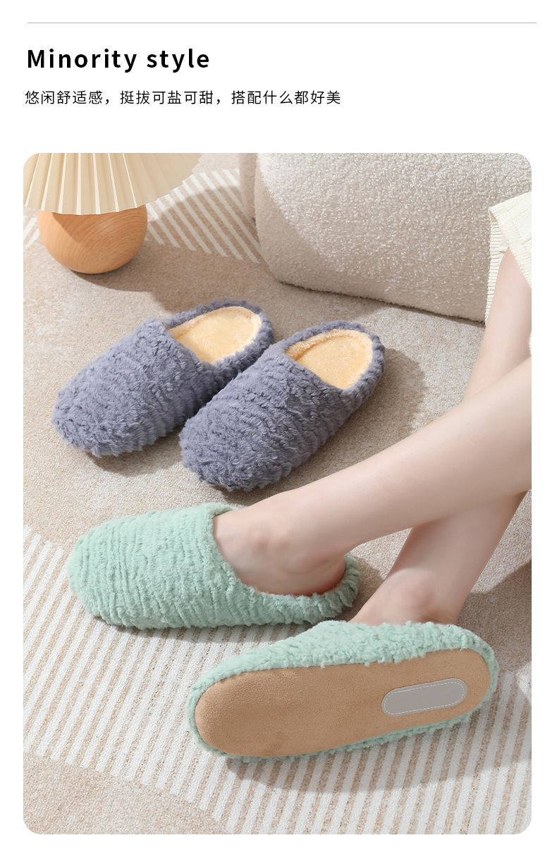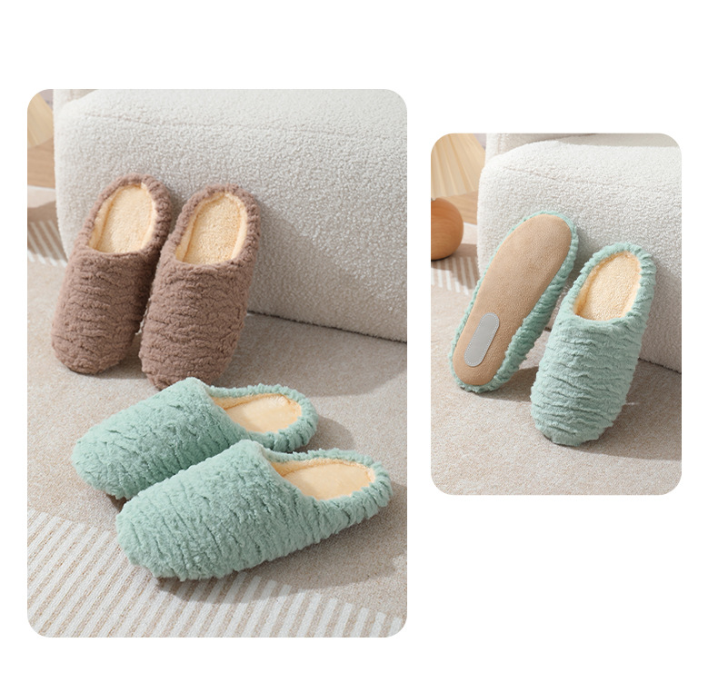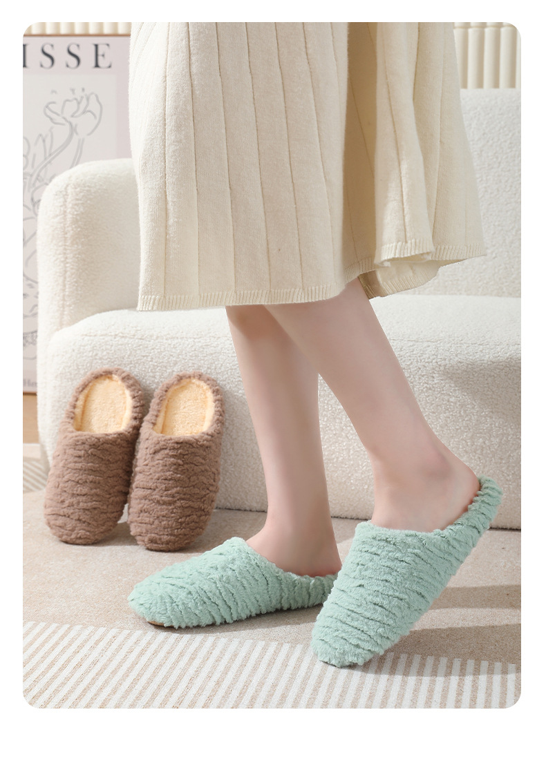 新型ジャカード日本式軟底静音スエードスリッパ滑り止め木床室内綿スリッパ