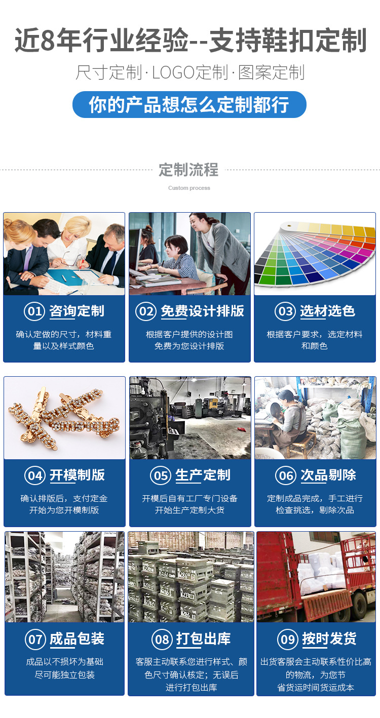メーカーは文字水ドリルジルコン金属靴花靴ボタン靴材装飾品靴部品を大量に供給している