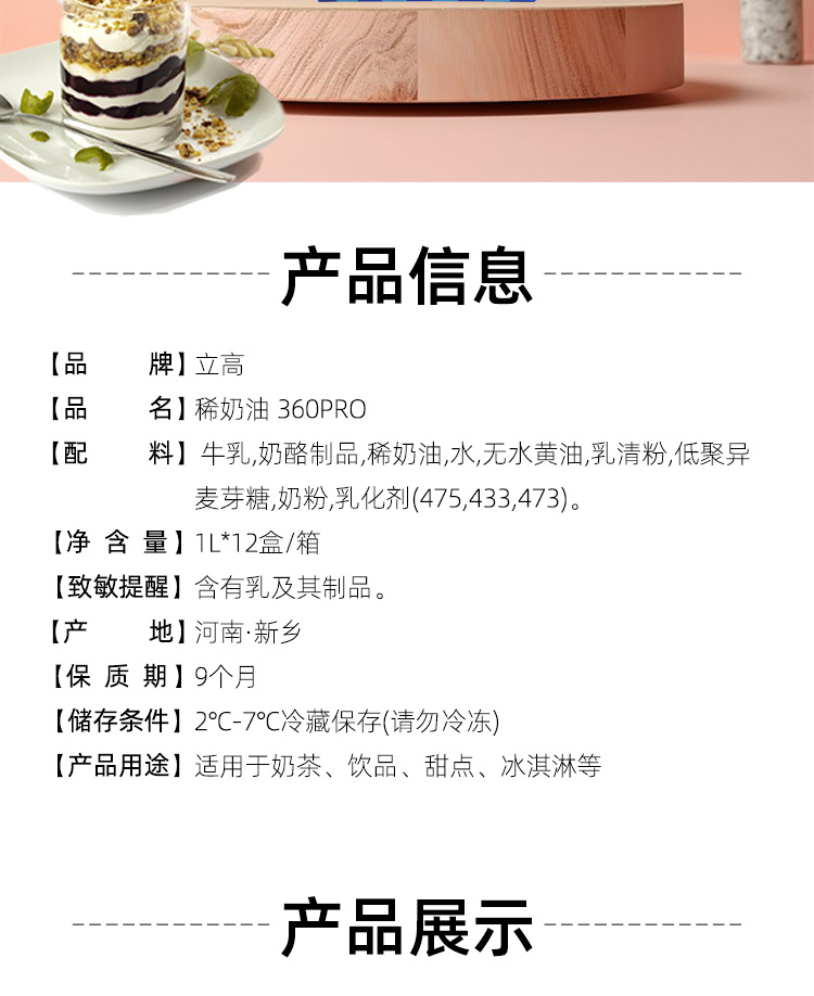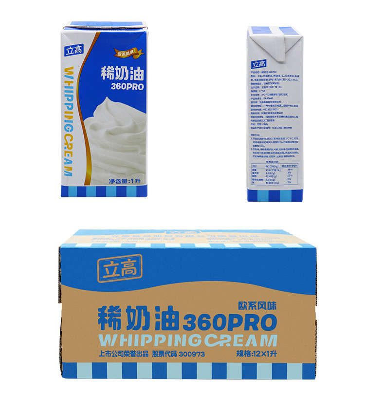 立高稀奶油淡奶油 360pro1L动物烘焙蛋糕店冰淇淋蛋挞商用批发