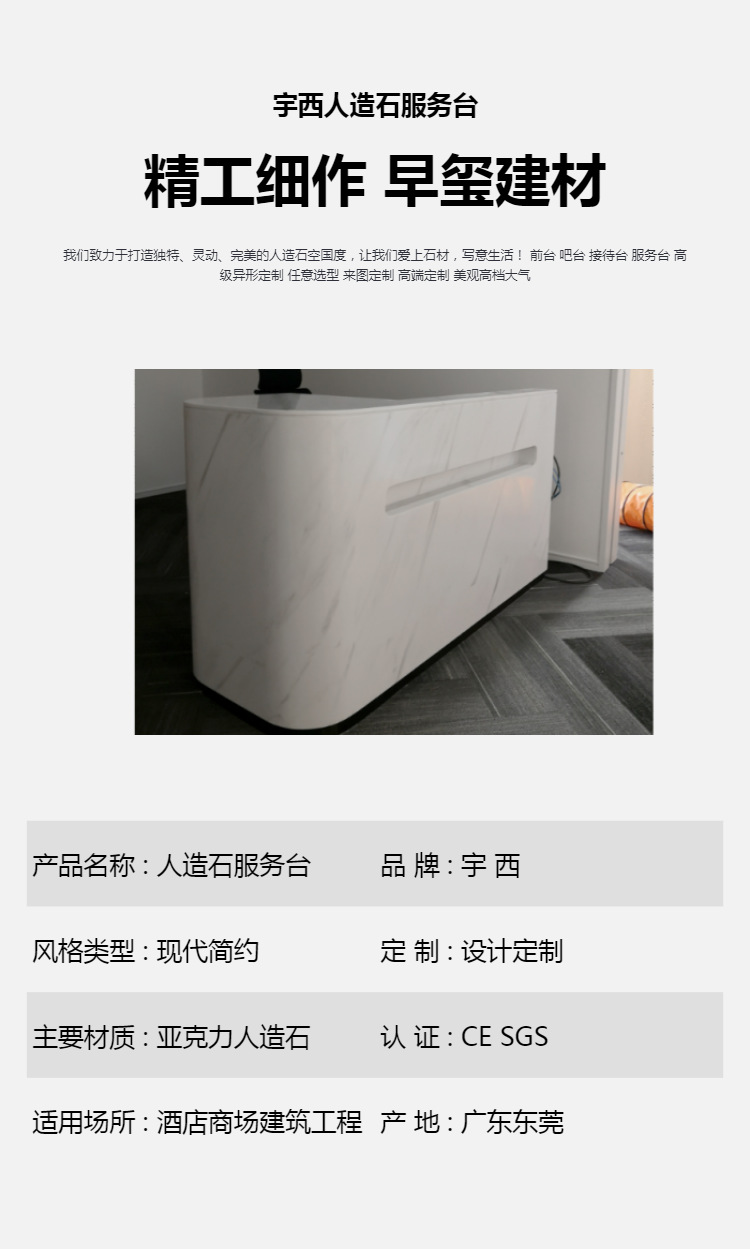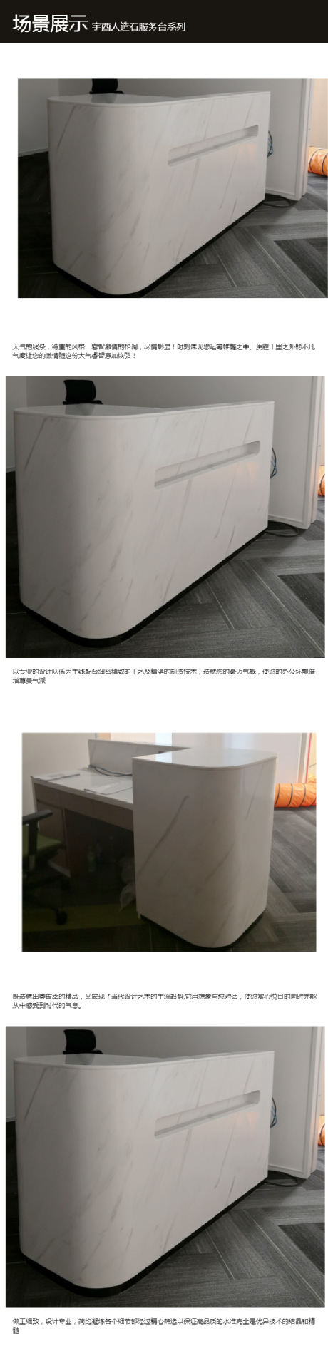 シンプルなスタイルの白い人造石サービスデスク会社ホテルオフィスフロントデスクメーカー卸売は図面に従ってカスタマイズできます