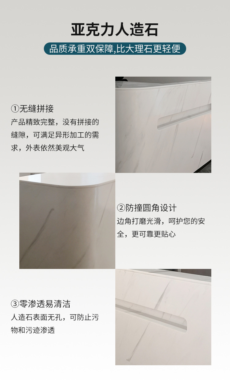人造石純白カウンタートップシンプルシームレス特殊形状受付デスク大型病院ナースステーション受付カウンターカスタマイズ