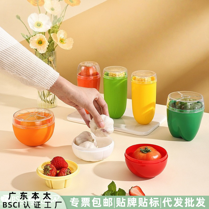 现货迷你蔬果密封盒便携塑料保鲜盒套装透明葡萄大蒜保鲜碗水果盒