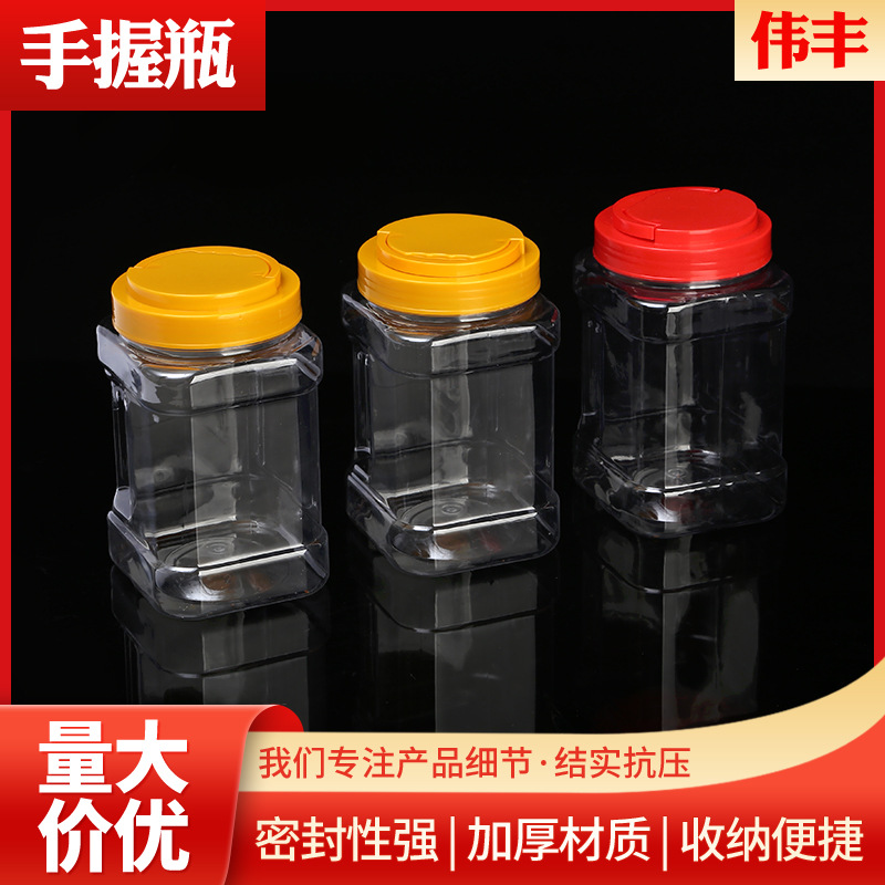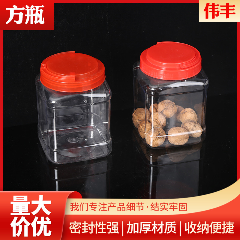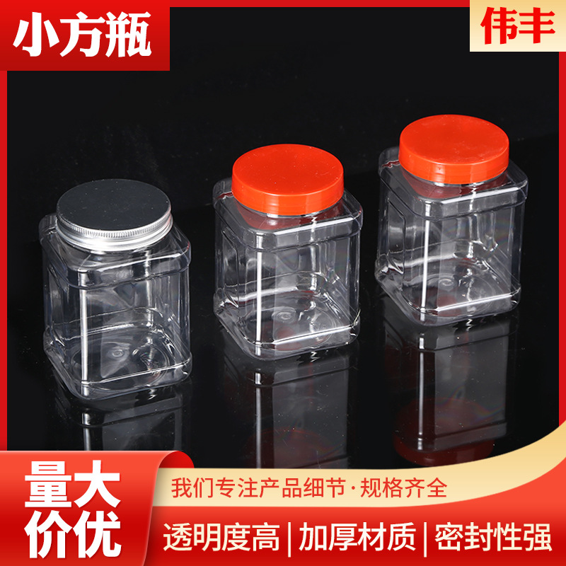 メーカーソース角型瓶大口径プラスチック透明瓶ナッツ雑穀スナック密封収納缶卸売り