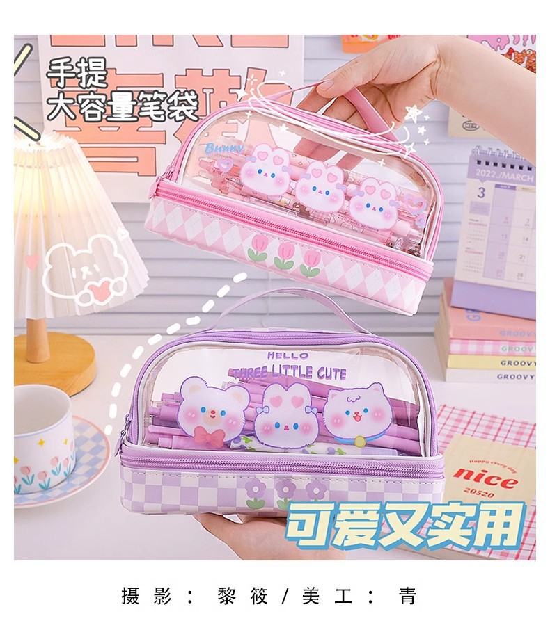 漫画大容量耐汚れ透明ペンバッグ学生かわいい文房具バッグ高颜値铅笔ケース文房具ケース卸売