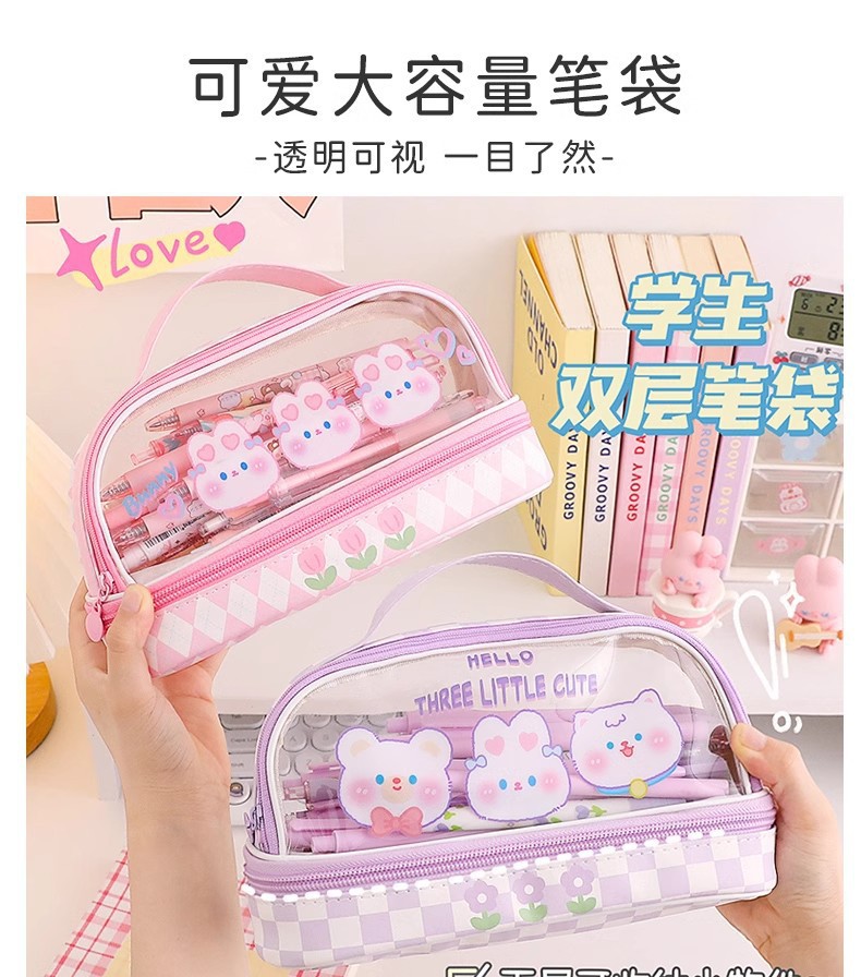 高颜値筆袋ins風小衆シンプル大容量文房具袋小学生女子多層透明鉛筆ケース