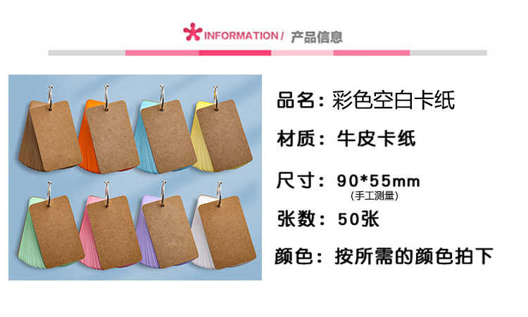 空白カード紙手書きカラー英語単語硬質紙小カード伝言携帯記憶カード
