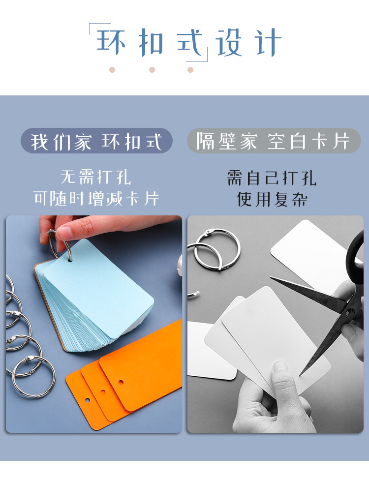 空白のカードの硬いカードの紙の小学生の手書きの自作の識字カードの国語のピンインの生の字の記憶の手のカードのリングのボタン式