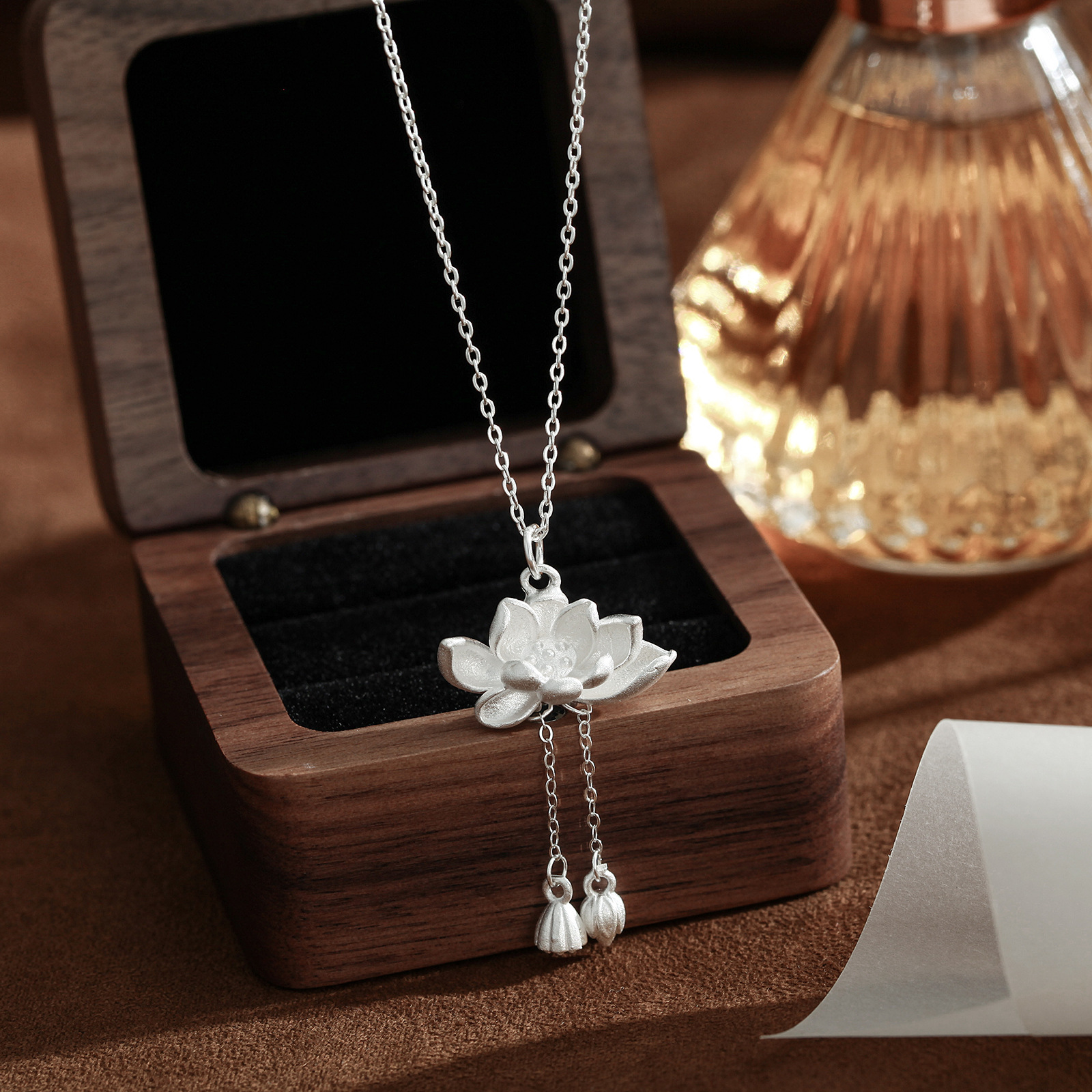 純銀 999 蓮タッセルフィリグリーネックレスインインロックニッチデザイン絶妙な鎖骨チェーン新中国風のネックレス