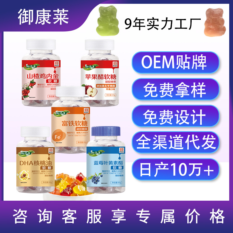 新型グミキャンディーブルーベリー葉黄素エステル富鉄グミサンザシ鶏内金グミDHAクルミ油グミ