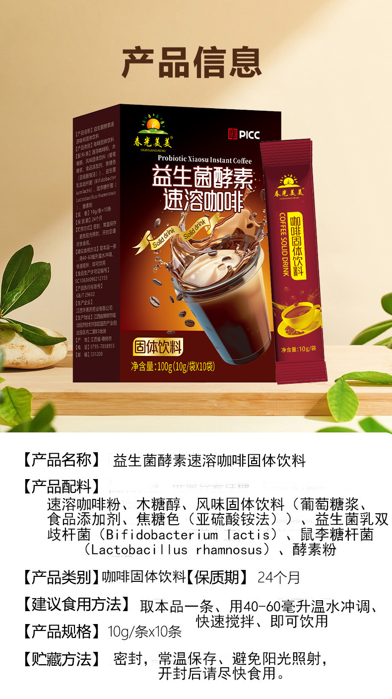 プロバイオティック酵素インスタント全箱ブラックコーヒーコーヒーパウダーホットおよびコールドコーヒーインスタントストリップ 10 グラム * 10 ストリップオフィス