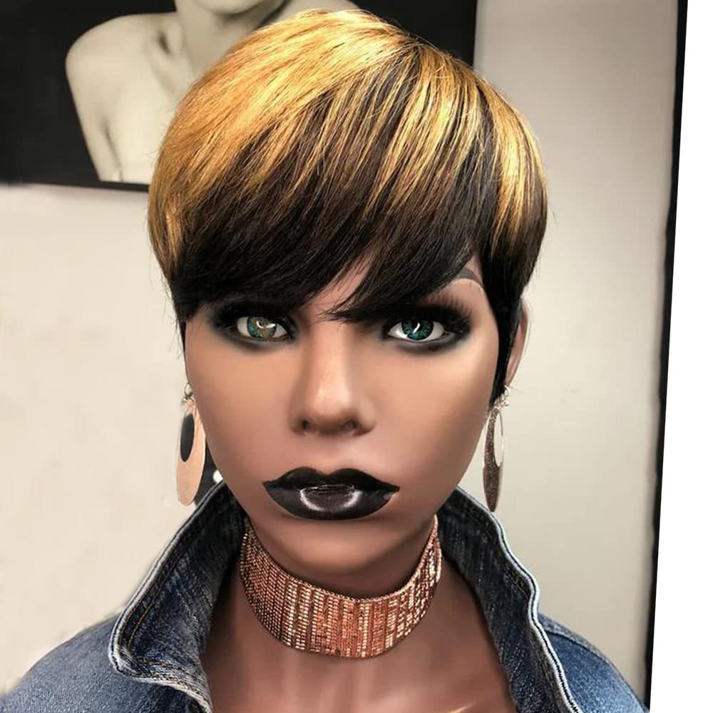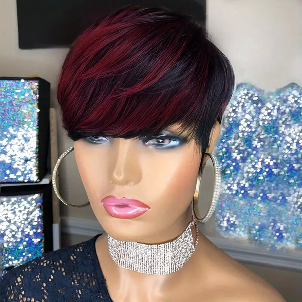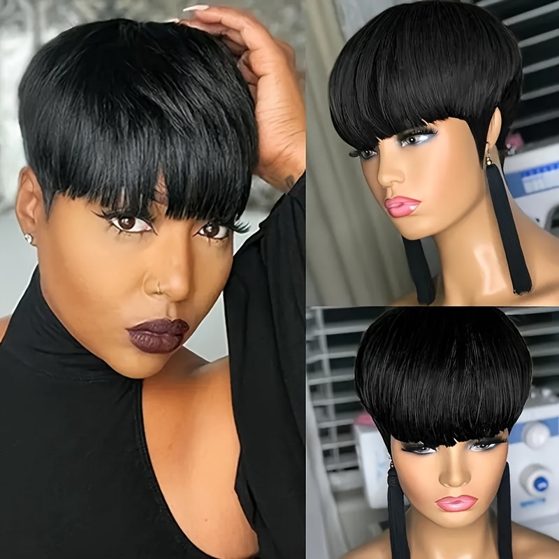 Pixie cutショートヘアウィッグスバングフルマシーンmadeレディースヘアセット