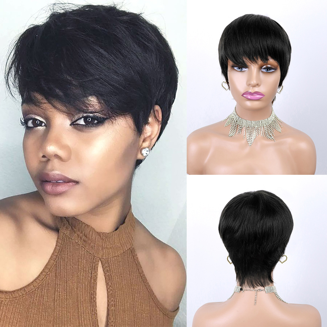 Pixie Cut shortstraight Human Hair Wigリアルヘアセットフルメカニズムヘアセット