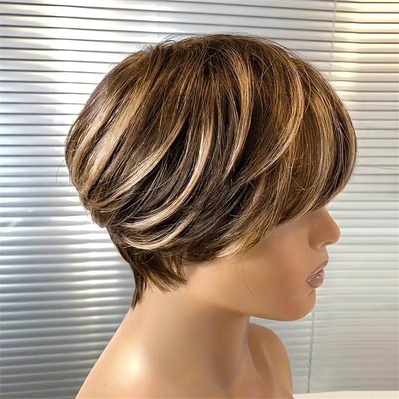 1B27 color pixie wigリアルヘアセット机构ヒューマンヘアウィッグフルマシーン