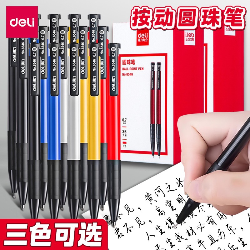 得力按动式圆珠笔子弹头0.7学生办公油笔蓝色黑色原子笔批发油性