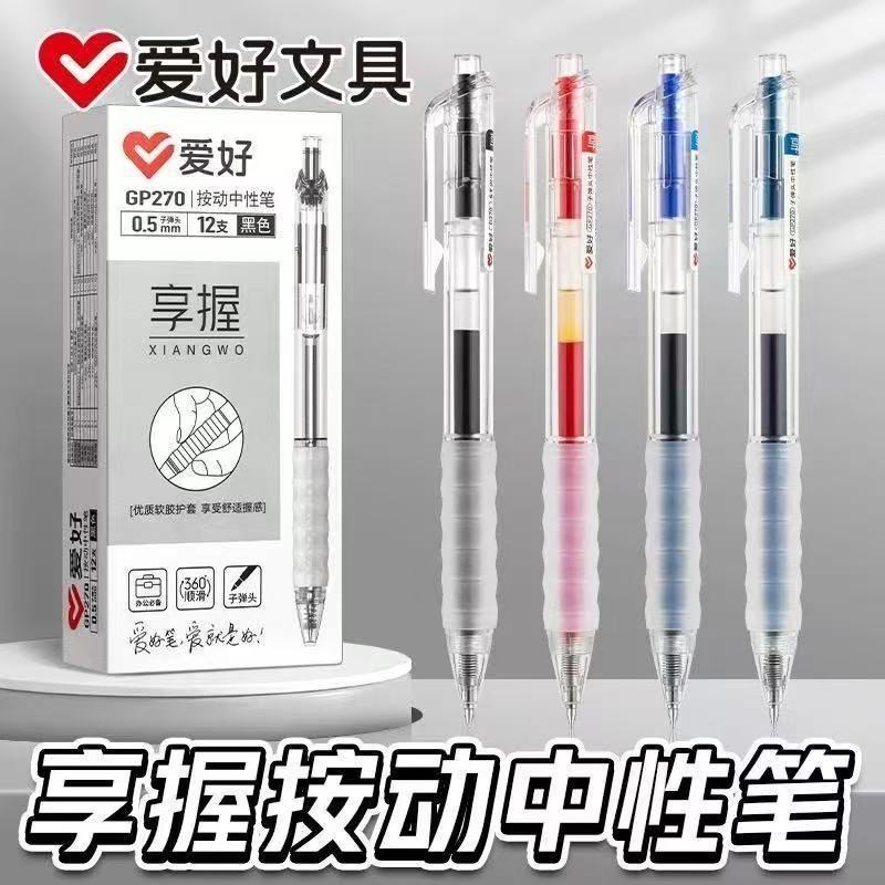 爱好GP270享握按动中性笔中小学生大容量考试水笔商务办公签字笔