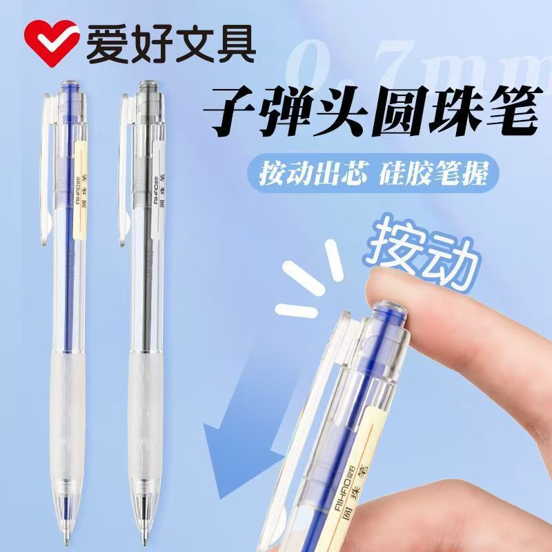 爱好圆珠笔按压蓝笔1901按动式子弹头黑0.7红学生文具商务办公笔