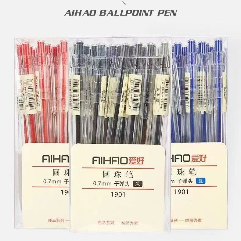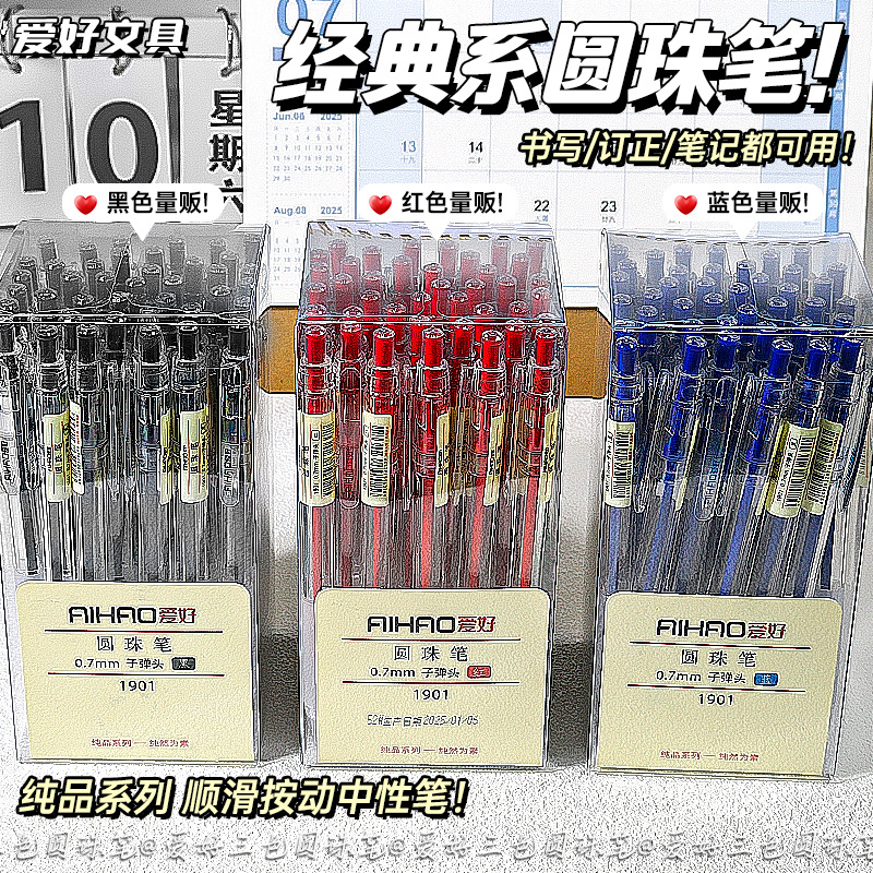 爱好1901纯品圆珠笔按动式0.7mm子弹头原子笔红蓝黑色简约中油笔