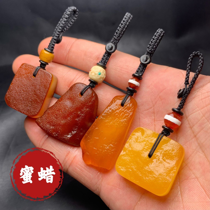 天然の蜜ろうの鍵は文を掛けてレトロな琥珀の原石の自動車のキーチェーンのカバンを遊んで携帯電話の平安のペンダントを飾ります。