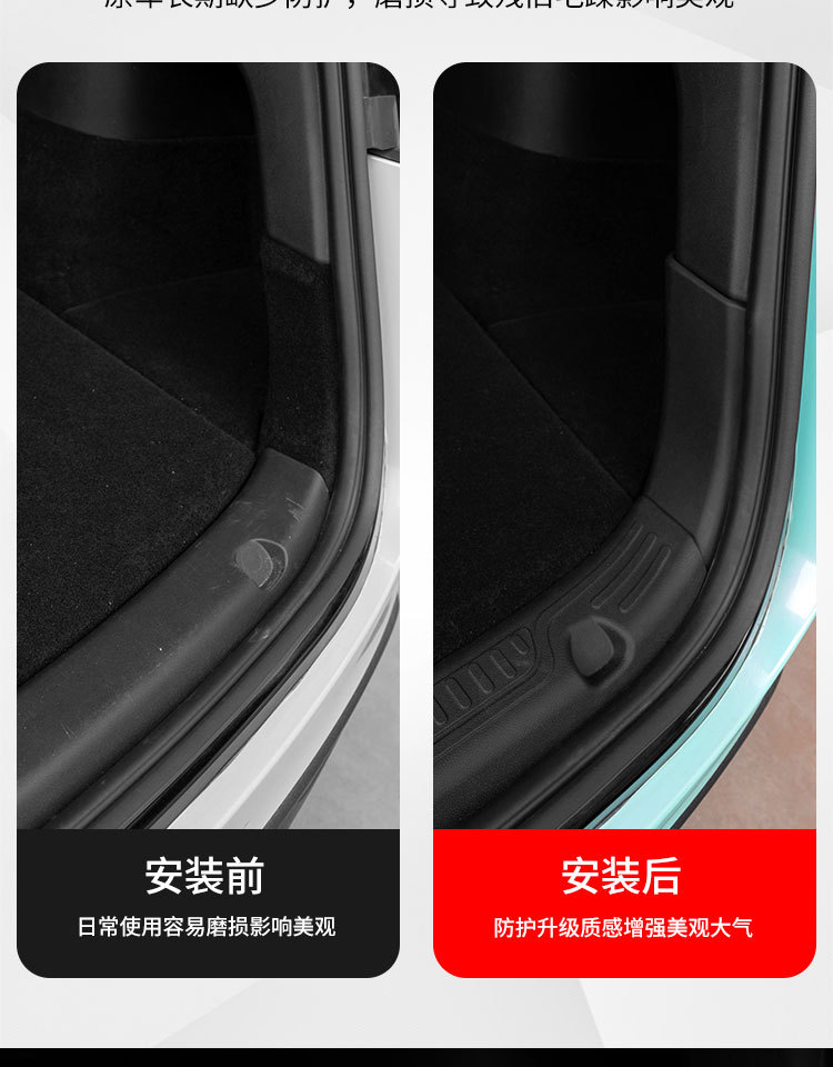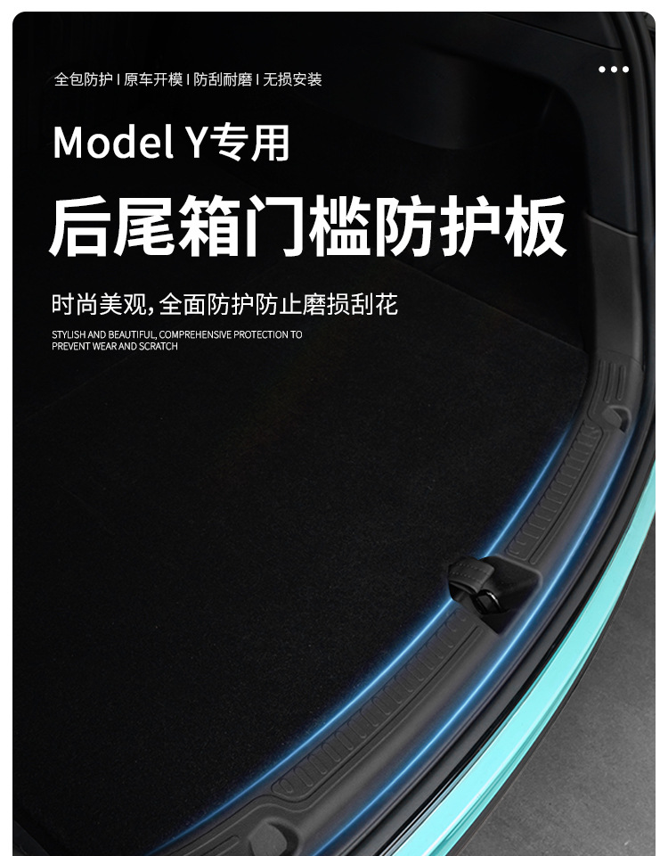 テスラmodelyトランク敷居条tpe保護トランク自動車用品を適用する